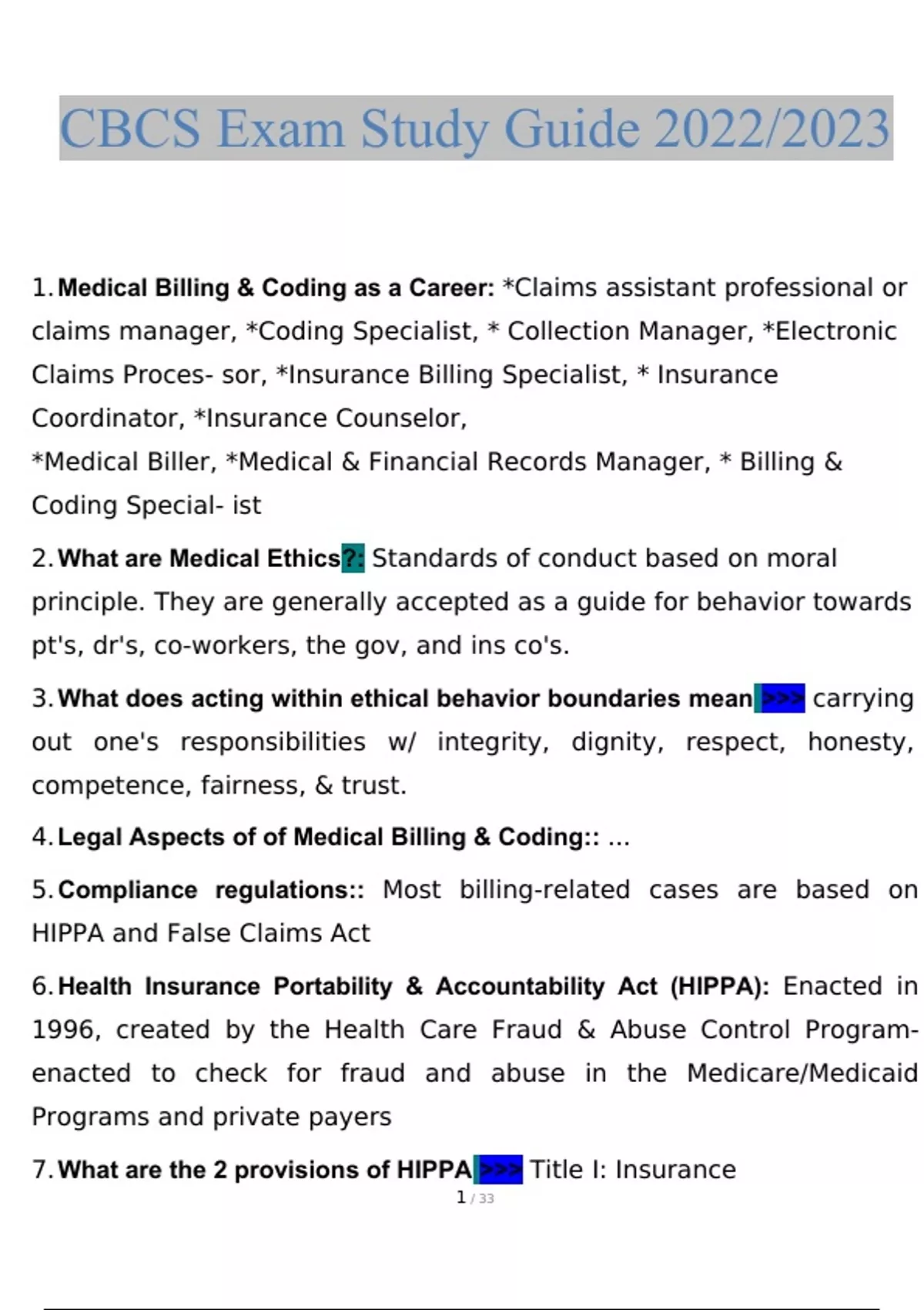 NHA CBCS Exam Study Guide Questions and Answers