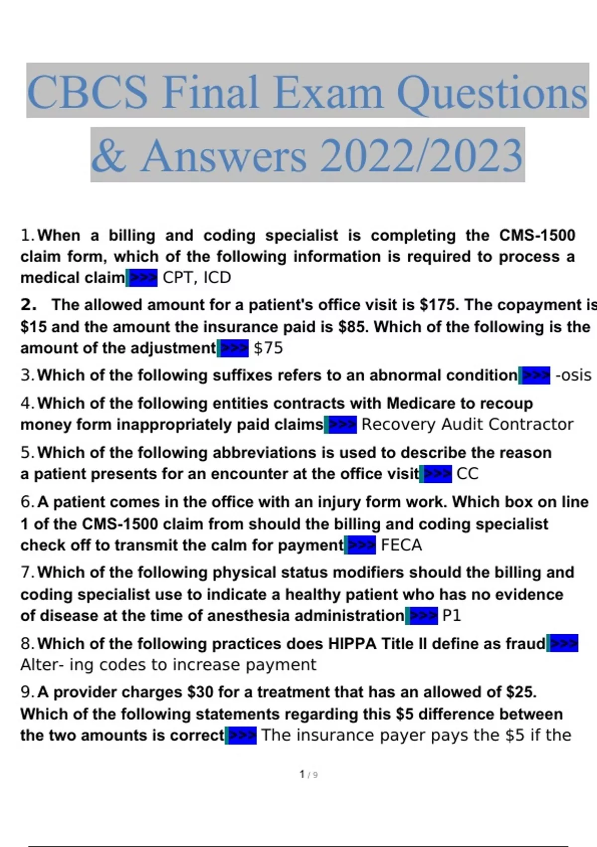 NHA CBCS Final Exam Questions and Answers