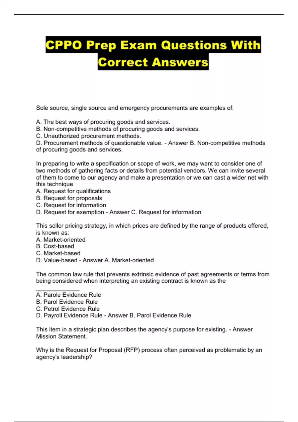 CPPO Prep Exam Questions With Correct Answers...