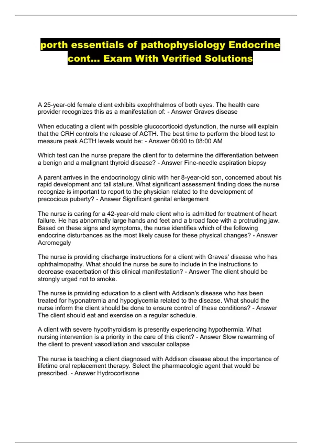 porth essentials of pathophysiology Endocrine cont... Exam With Verified Solutions