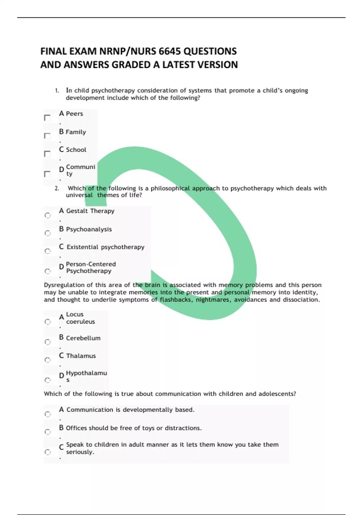 FINAL EXAM NRNP/NURS 6645 QUESTIONS AND ANSWERS GRADED A LATEST VERSION