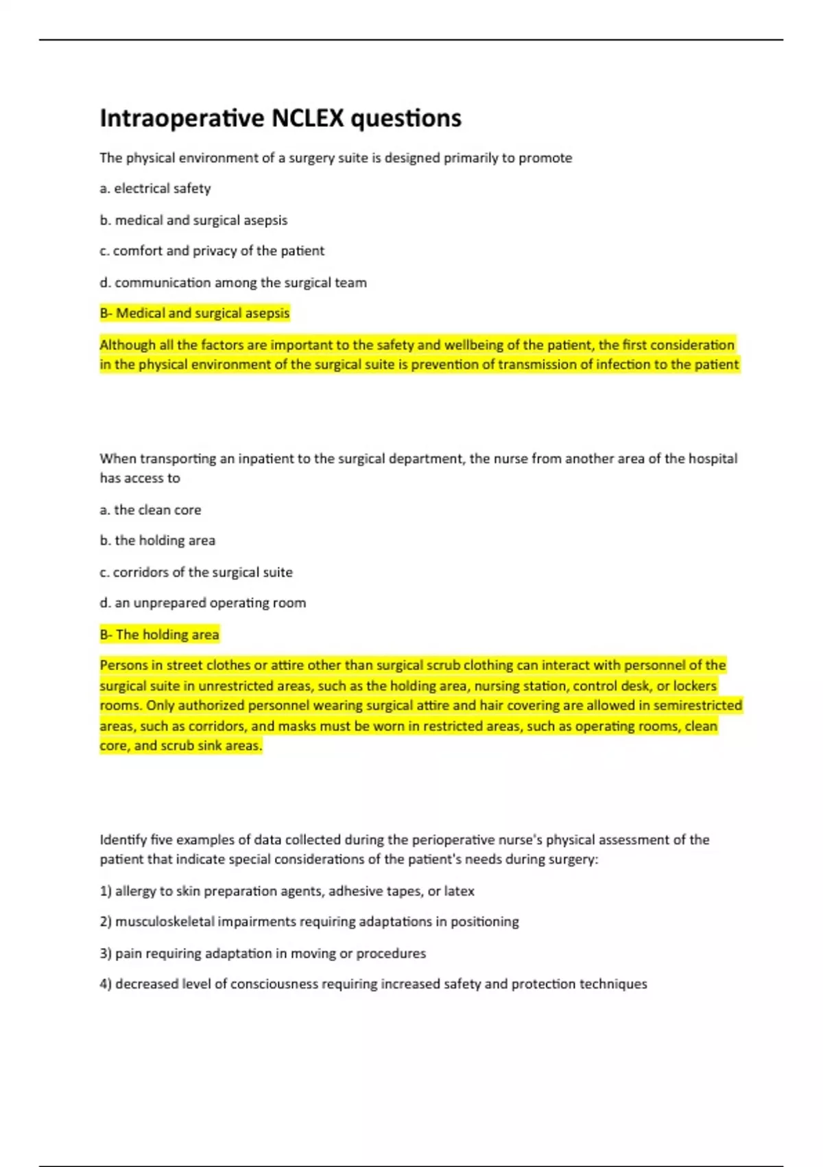 Intraoperative NCLEX questions and Answers Rated A+