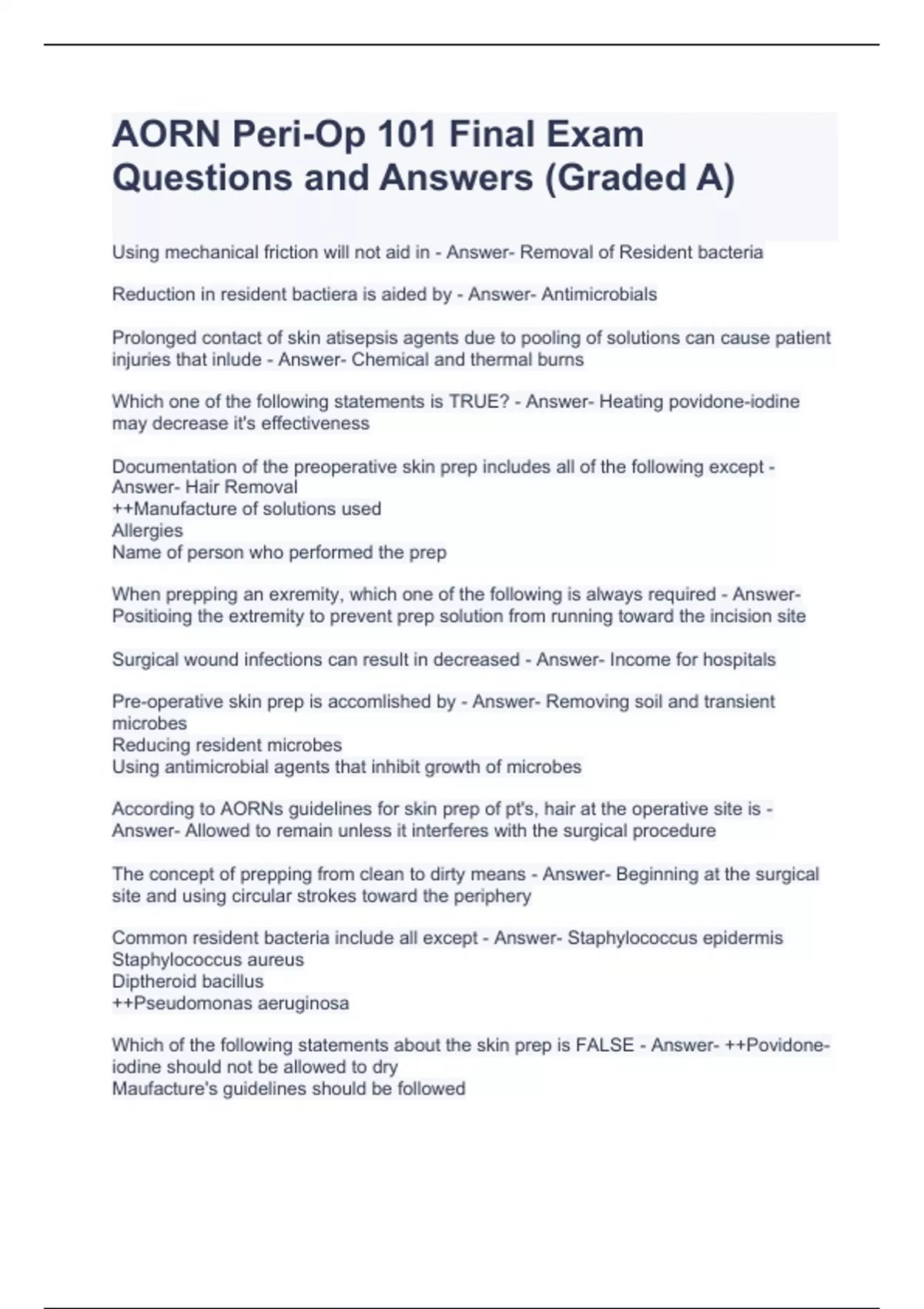 AORN Peri-Op 101 Final Exam Questions and Answers (Graded A)