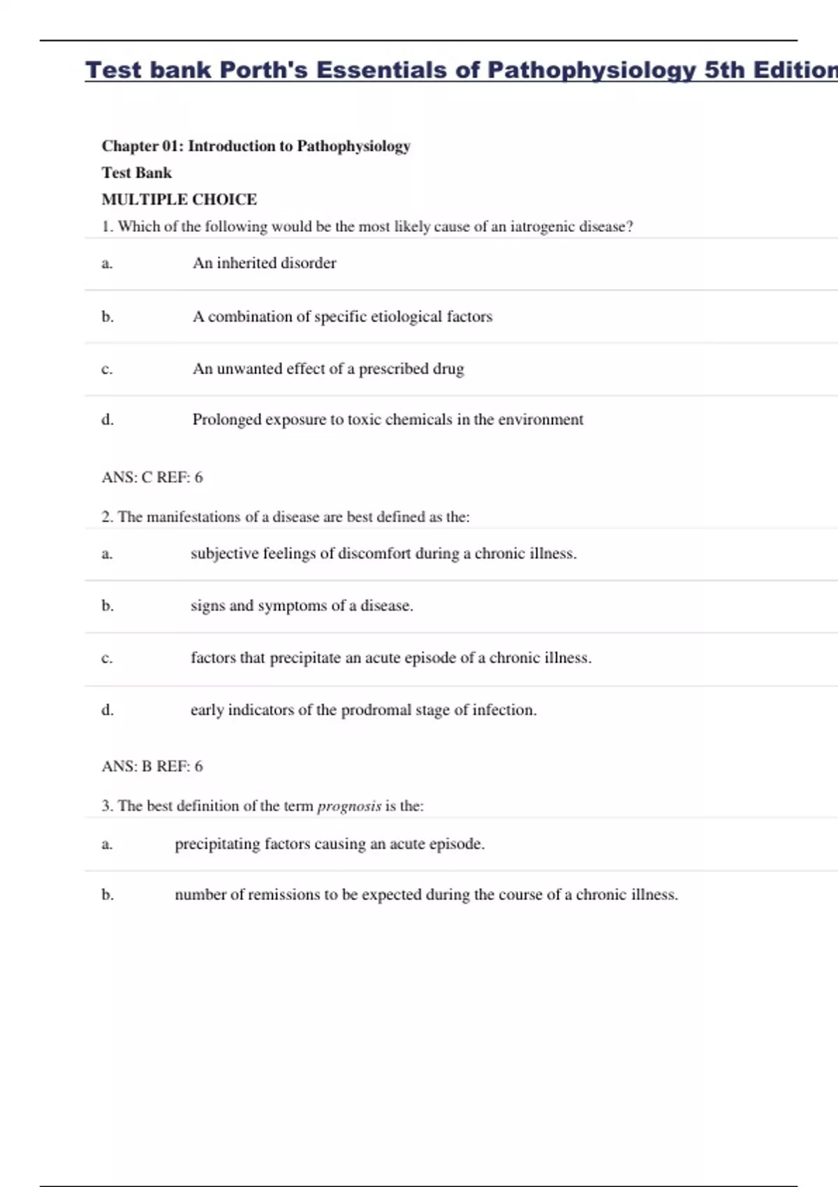 Test bank Porth's Essentials of Pathophysiology 5th Edition