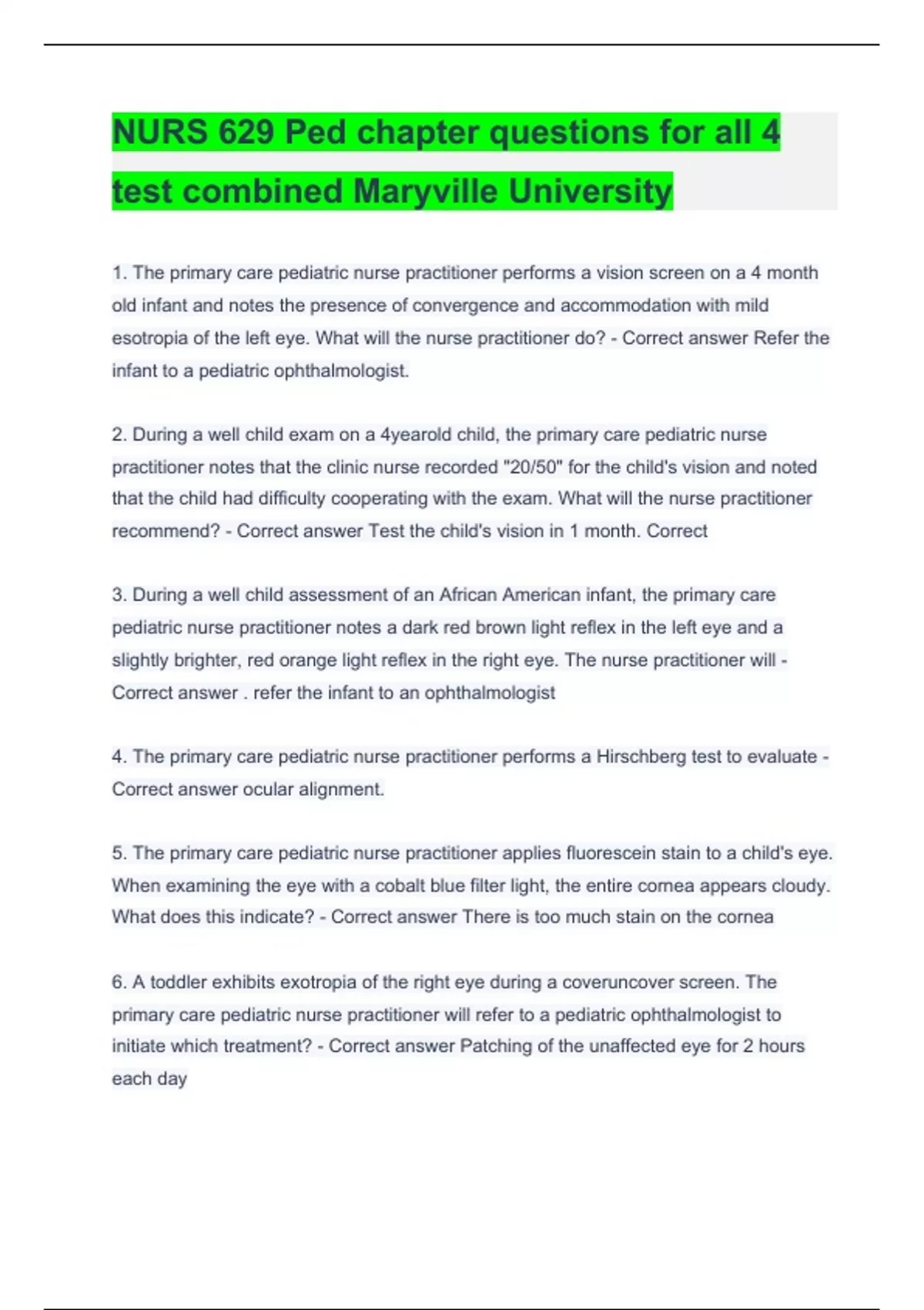 NURS 629 Ped chapter questions for all 4 test combined Maryville UniversityNURS 629 Ped chapter questions for all 4 test combined Maryville UniversityNURS 629 Ped chapter questions for all 4 test combined Maryville University