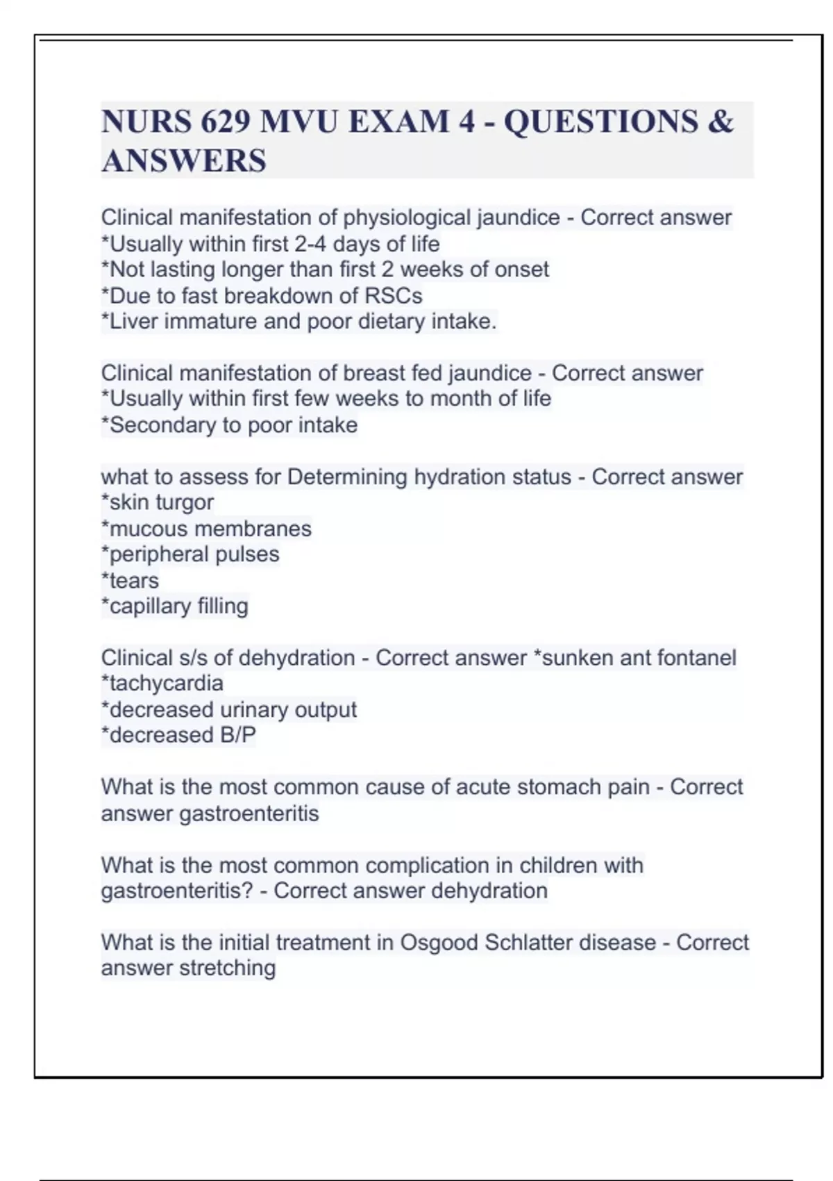NURS 629 MVU EXAM 4 - QUESTIONS & ANSWERS NURS 629 MVU EXAM 4 - QUESTIONS & ANSWERS NURS 629 MVU EXAM 4 - QUESTIONS & ANSWERS NURS 629 MVU EXAM 4 - QUESTIONS & ANSWERS