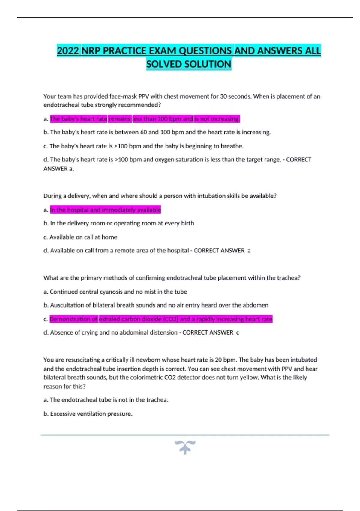 2022 NRP PRACTICE EXAM QUESTIONS AND ANSWERS ALL SOLVED SOLUTION