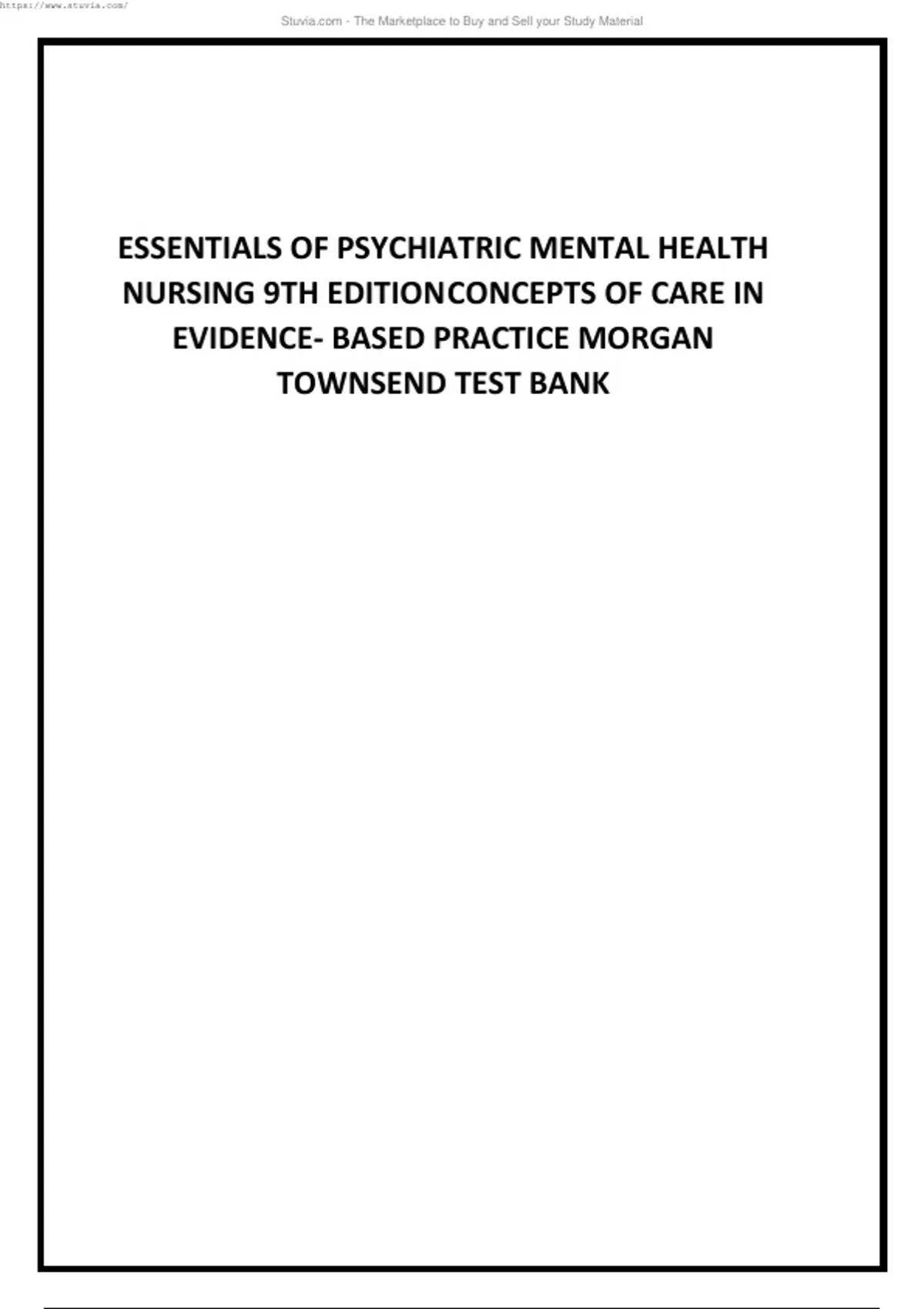 ESSENTIALS OF PSYCHIATRIC MENTAL HEALTH NURSING 9TH EDITION CONCEPTS OF CARE IN EVIDENCE- BASED PRACTICE MORGAN TOWNSEND TEST BANK.pdfESSENTIALS OF PSYCHIATRIC MENTAL HEALTH NURSING 9TH EDITION CONCEPTS OF CARE IN EVIDENCE- BASED PRACTICE MORGAN TOWNSEND