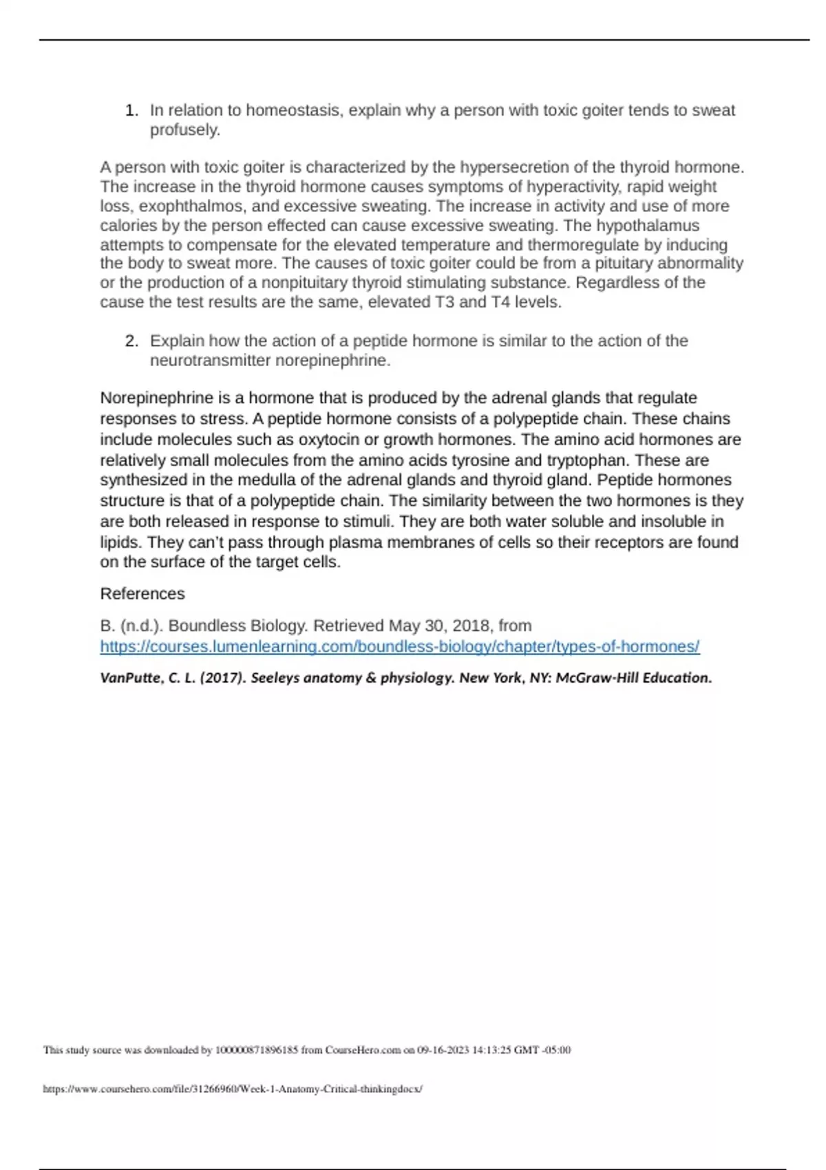 Week 1 Anatomy Critical thinking