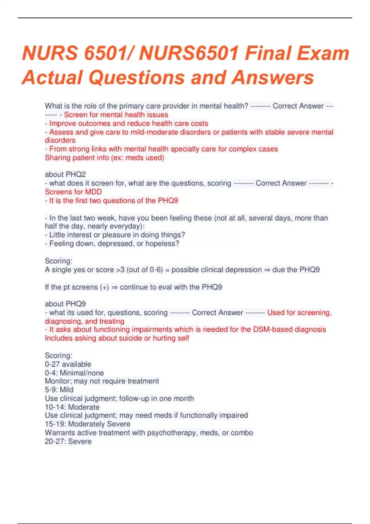 NURS 6501/ NURS 6501 Final Exam Actual Exam Questions and Answers Updated