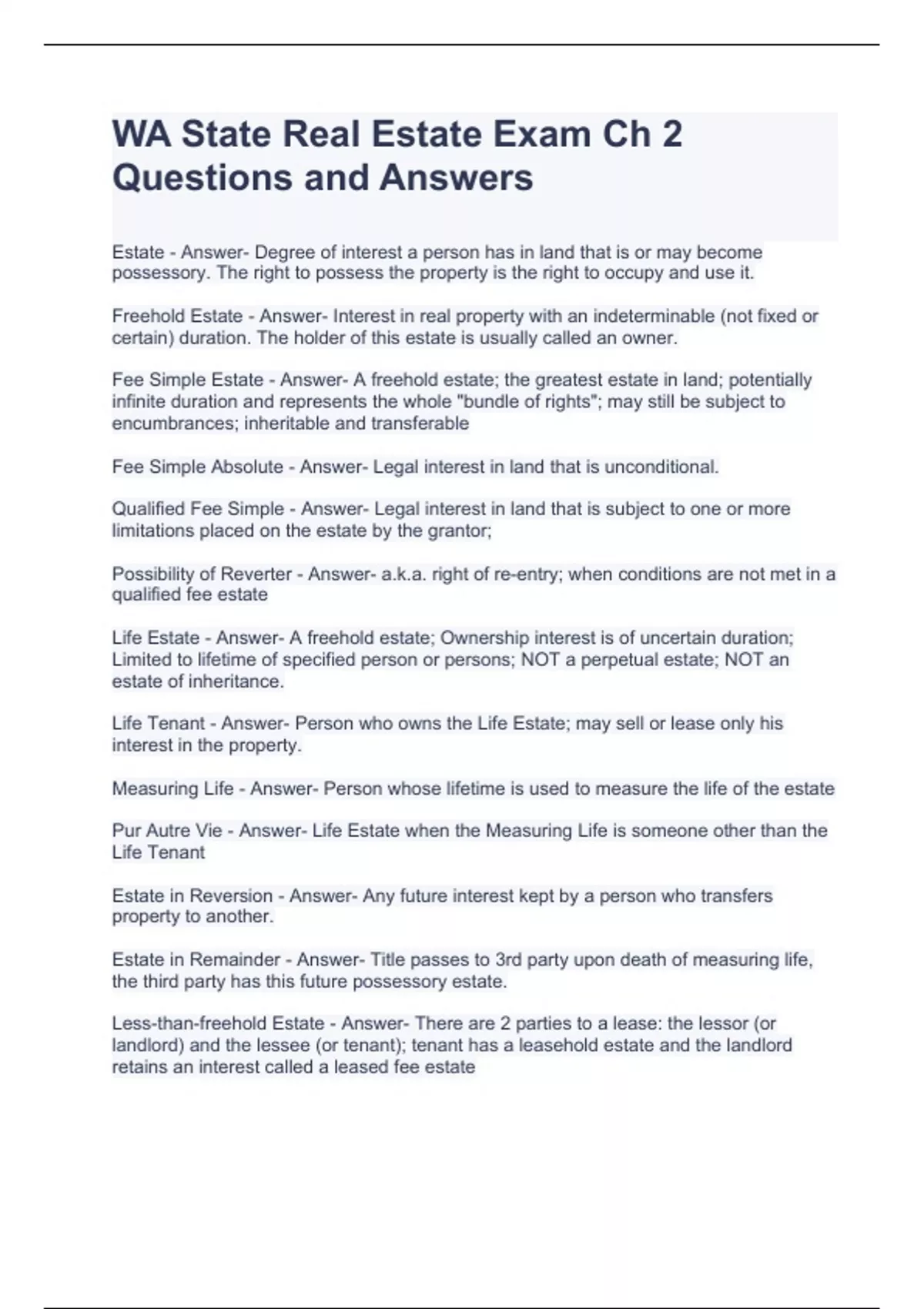 Washington State Real Estate Exam Bundle (Graded A)