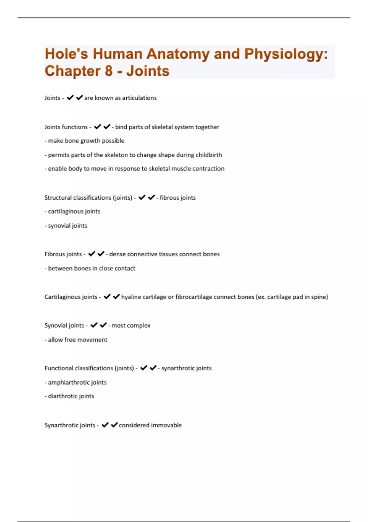 Hole's Human Anatomy and Physiology: Chapter 8 - Joints | 73 Questions And Answers Rated A+