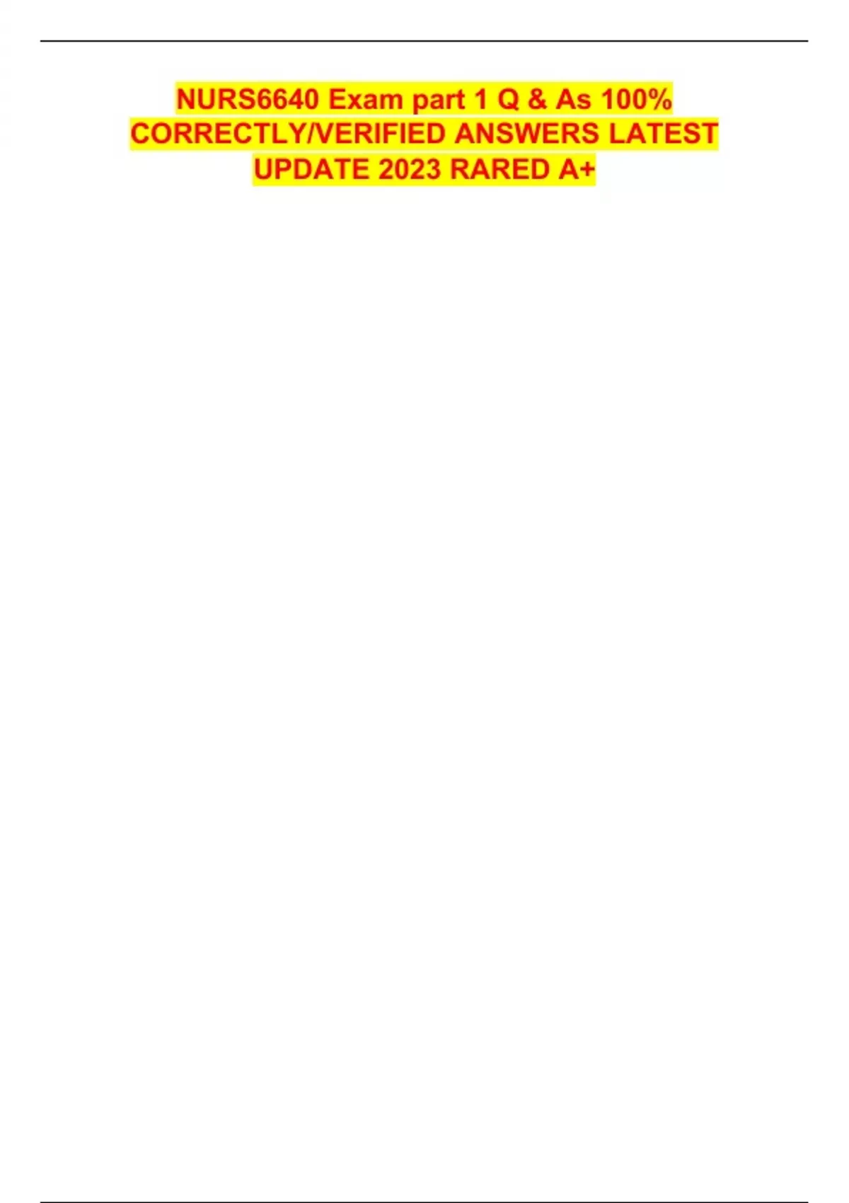 NURS6640 Exam part 1 Q & As 100% CORRECTLY/VERIFIED ANSWERS LATEST UPDATE 2023 RARED A+