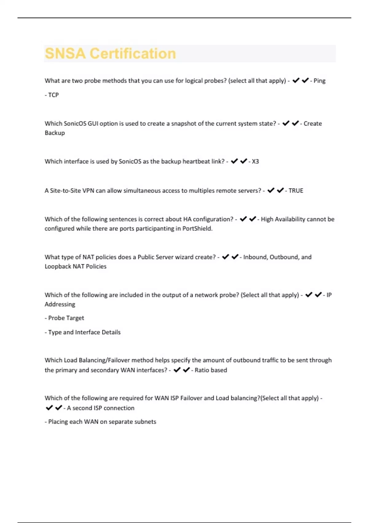 SNSA Certification | 59 Questions And Answers Rated A+