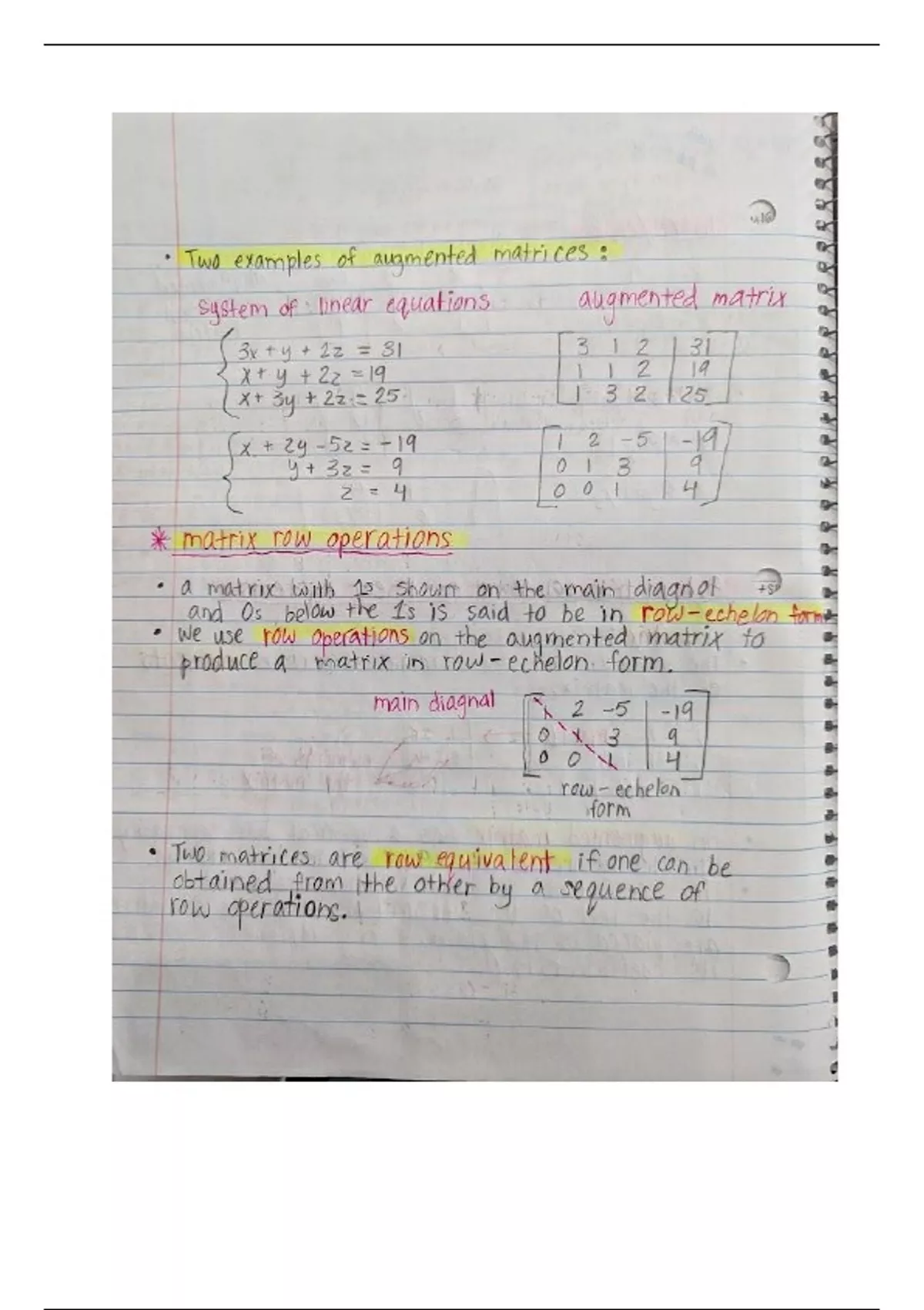Notes with examples and all of the steps for the examples. Highlighting and colored pens were used to separate the sections.