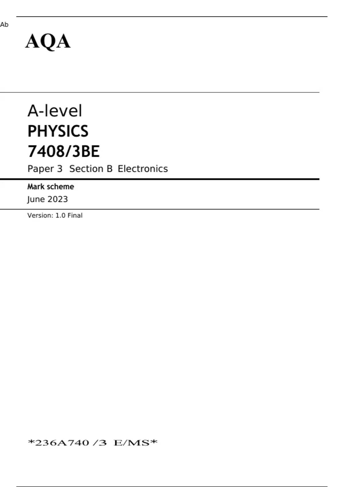 AQA A-level PHYSICS Paper 1,2 & 3 MARK SCHEMES 2023