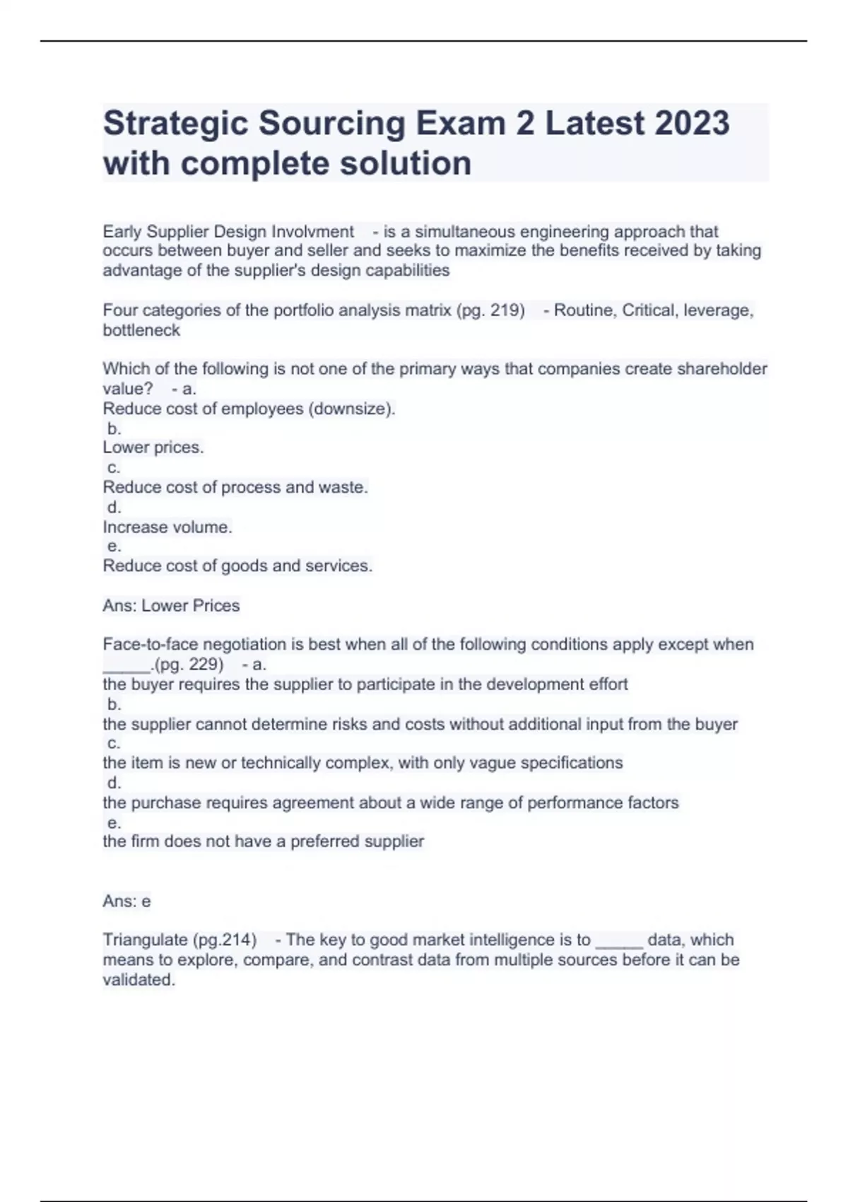 Strategic Sourcing Exam 2 Latest 2023 with complete solution