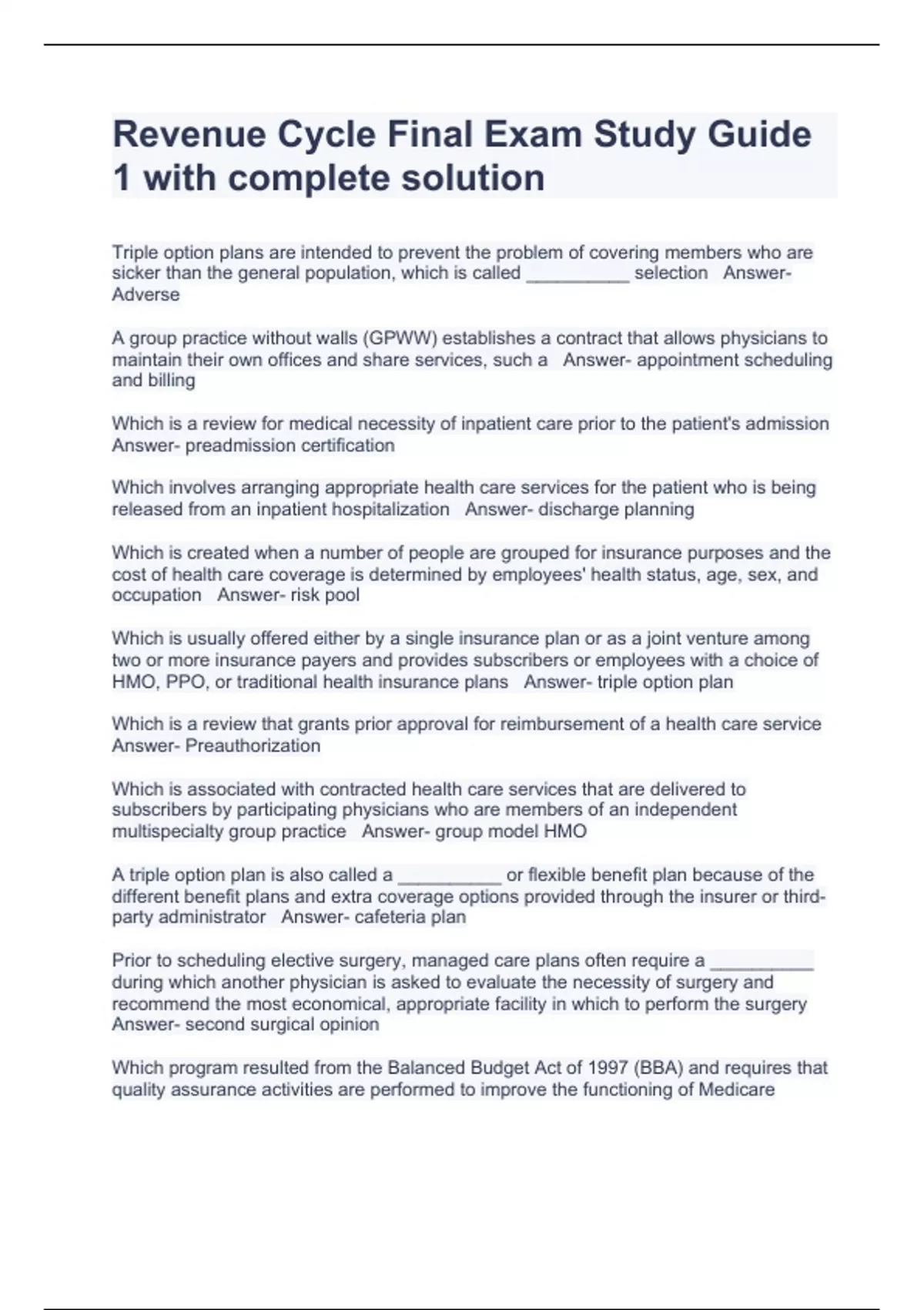 Revenue Cycle Final Exam Study Guide 1 with complete solution
