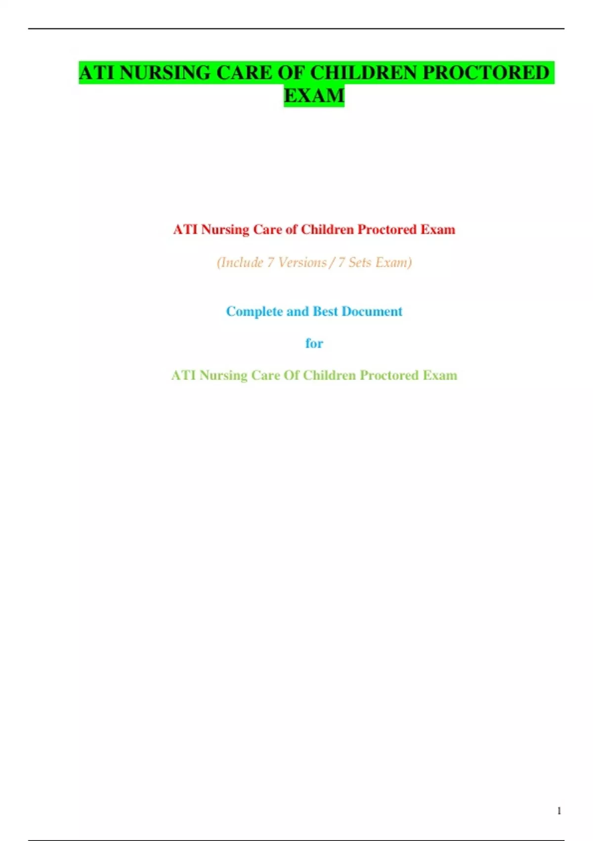 , ATI Nursing Care of Children