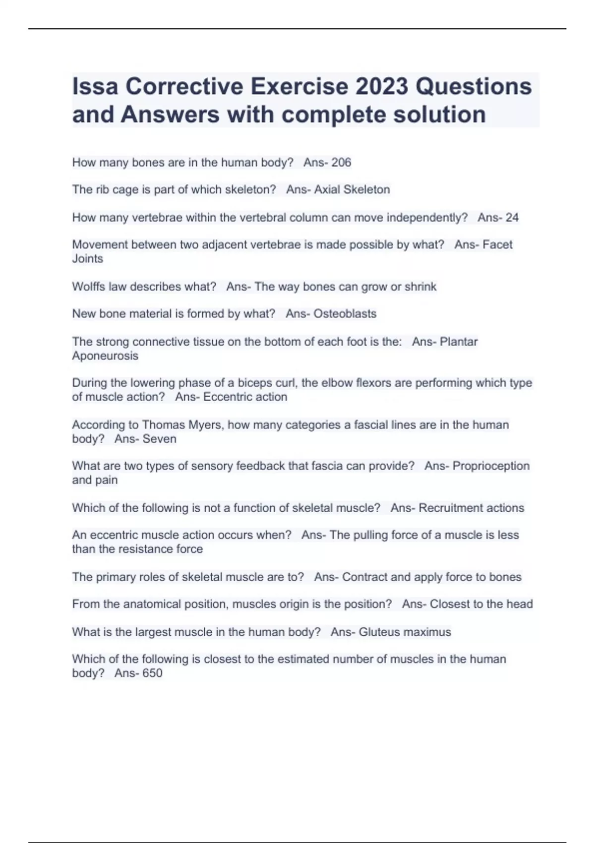 Issa Corrective Exercise 2023 Questions and Answers with complete solution