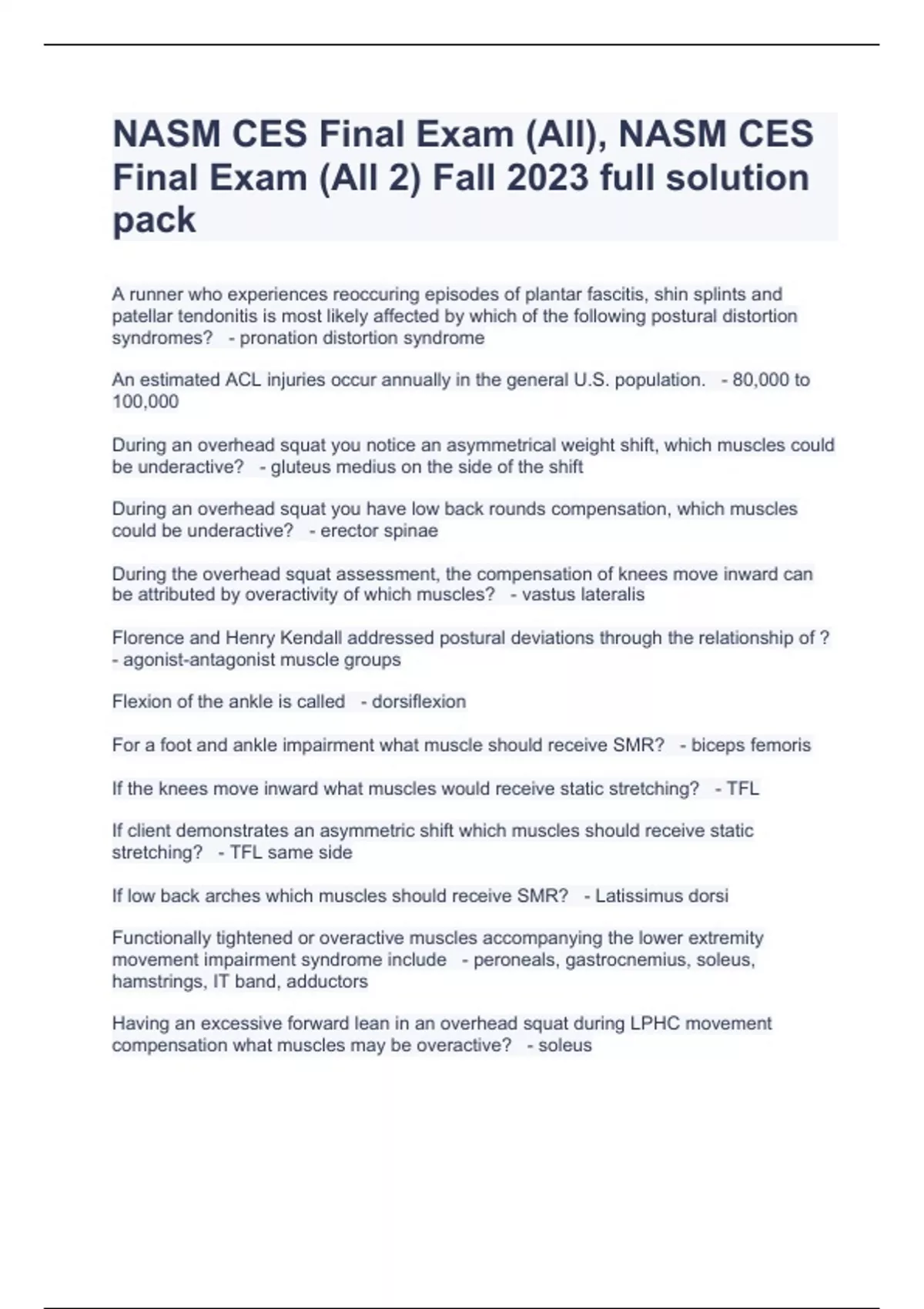 NASM CES Final Exam (All), NASM CES Final Exam (All 2) Fall 2023 full solution pack