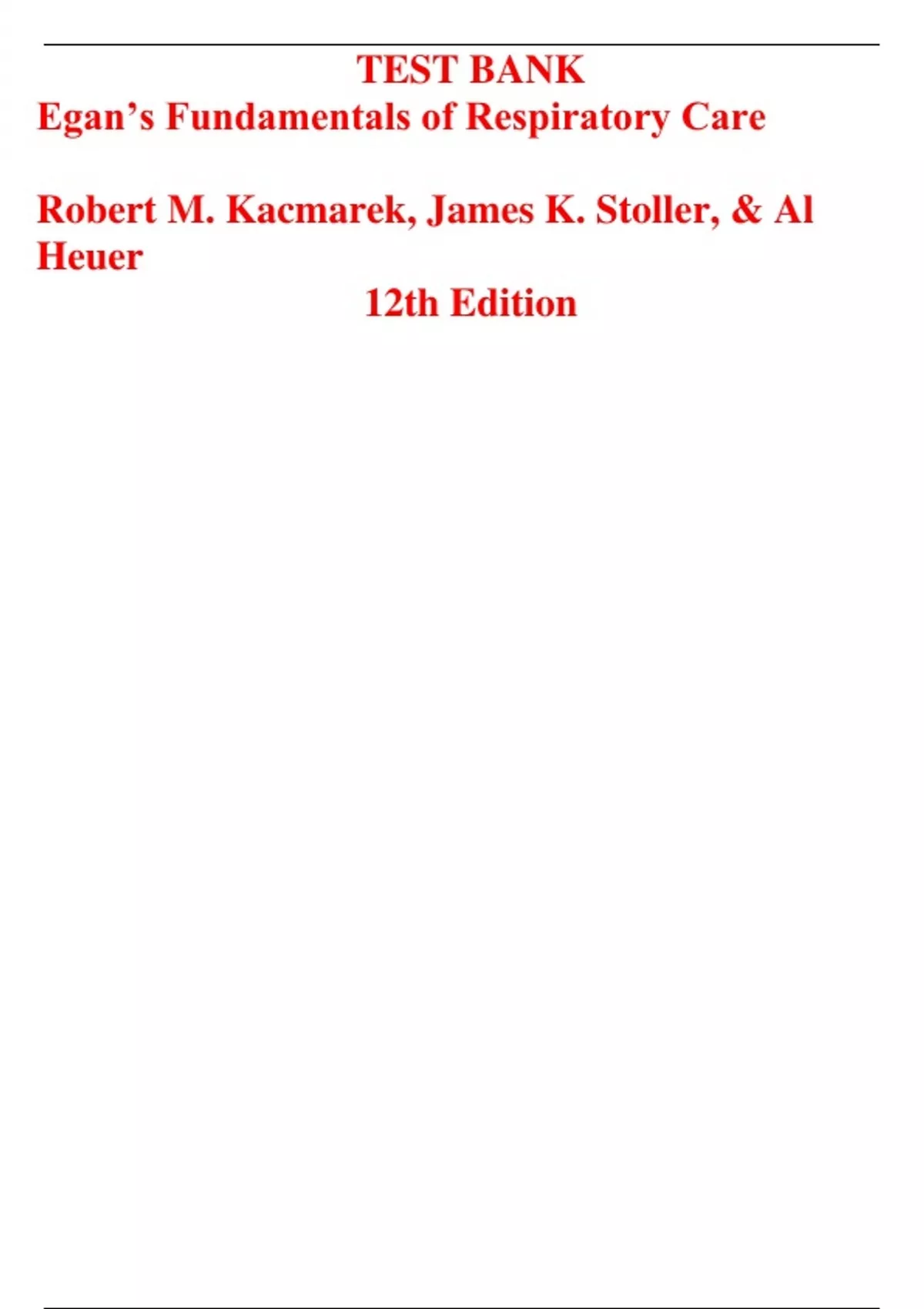 TEST BANK Egan’s Fundamentals of Respiratory Care Robert M. Kacmarek, James K. Stoller, & Al Heuer 12th Edition