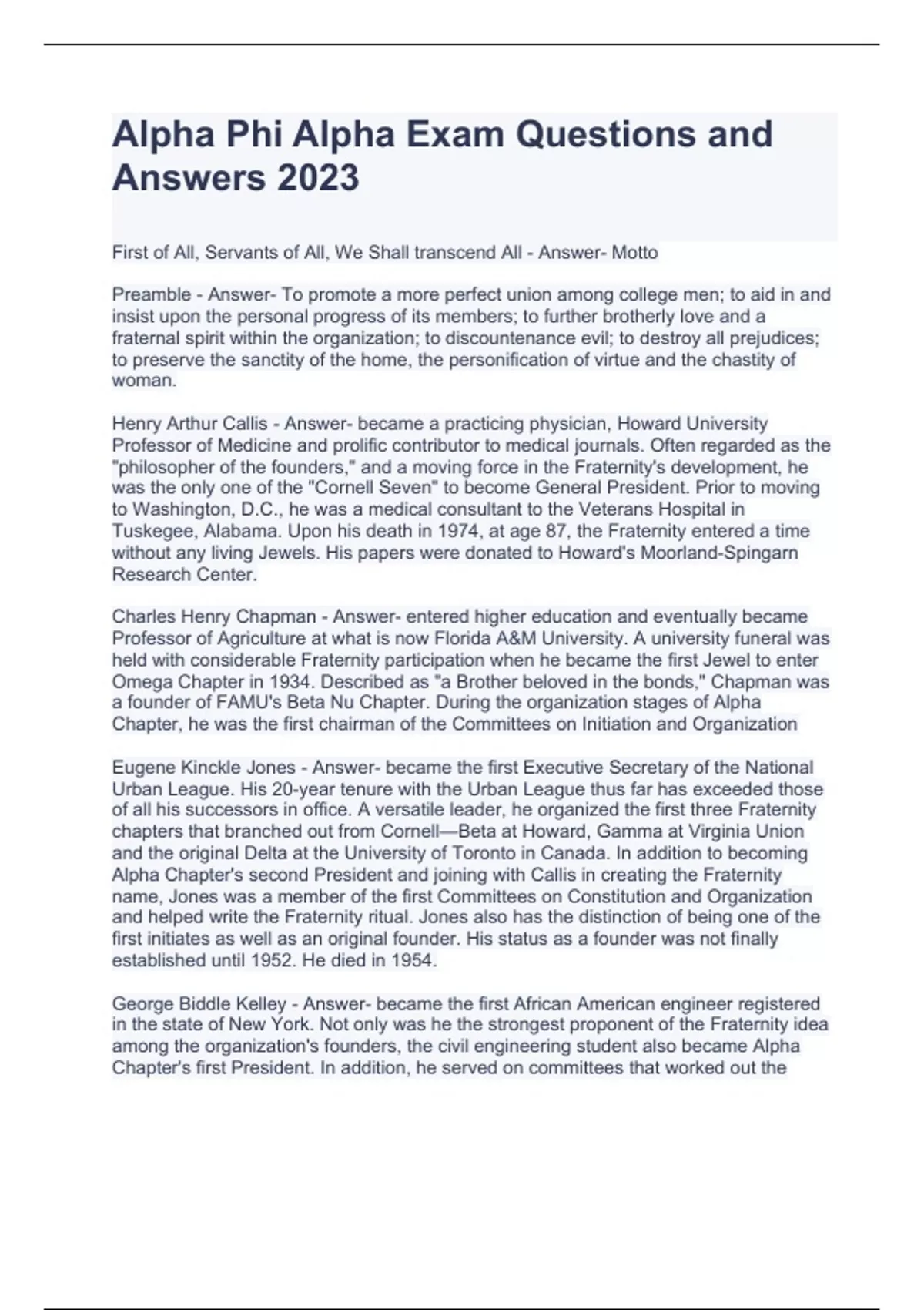Alpha Phi Alpha Exam Questions and Answers 2023