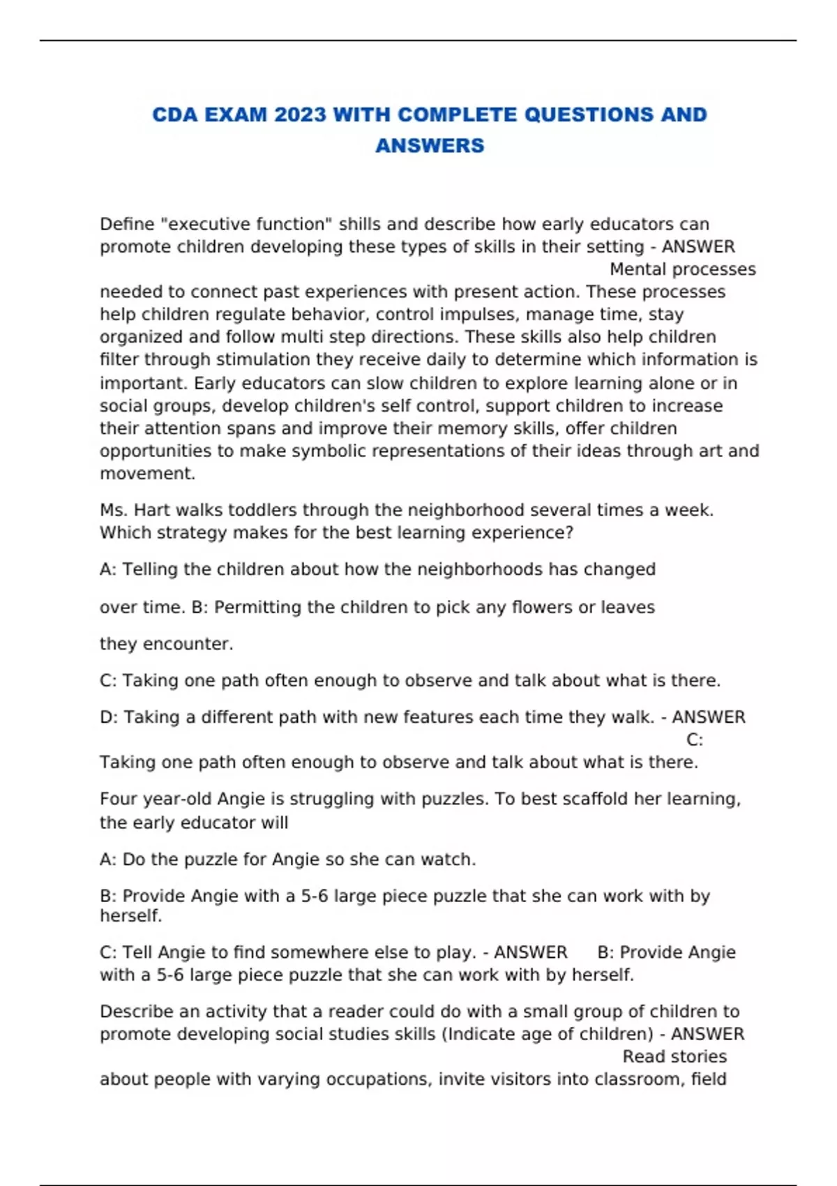 CDA EXAM 2023 WITH COMPLETE QUESTIONS AND UPDATED ANSWERS