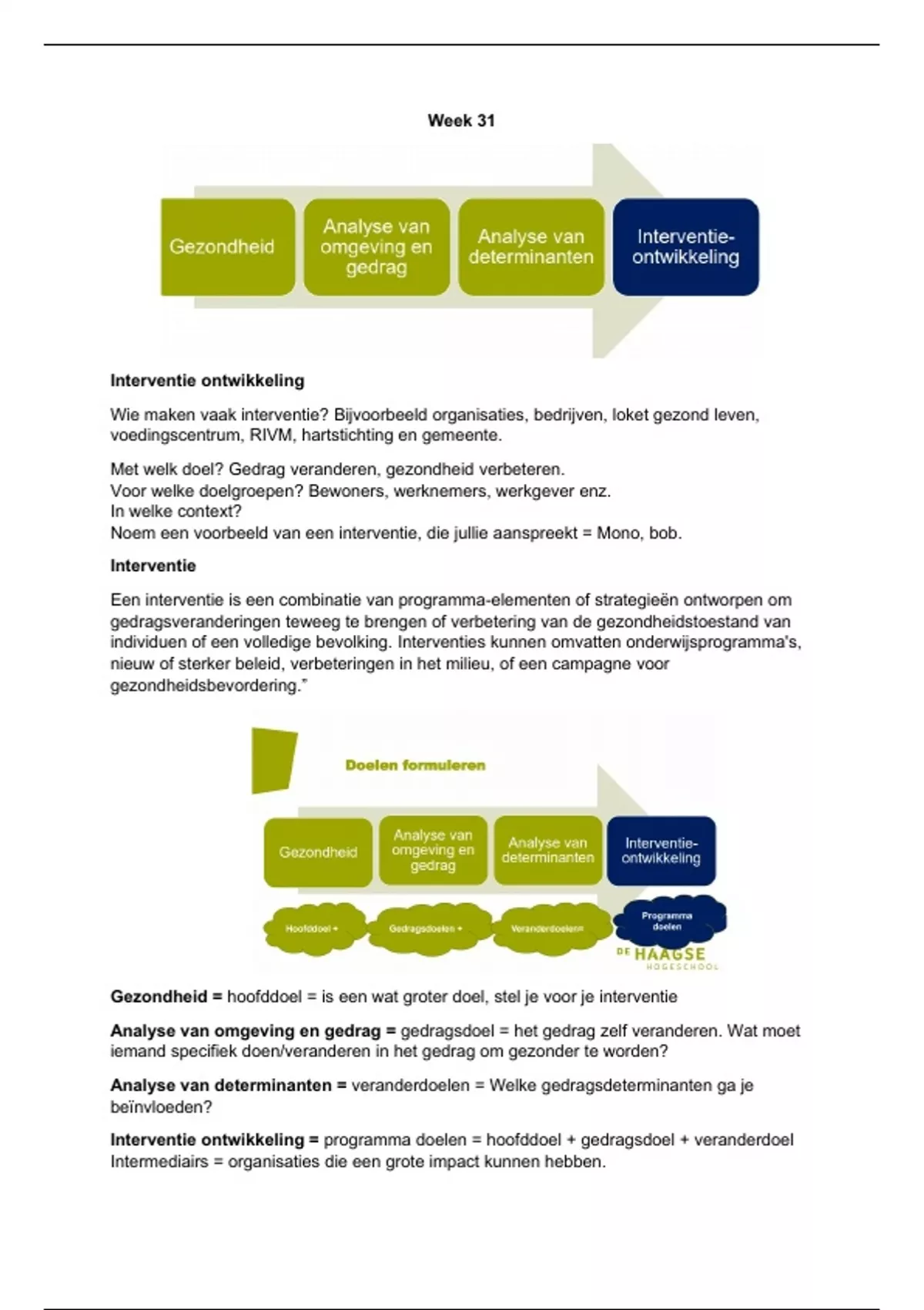Gezondheid = hoofddoel = is een wat groter doel, stel je voor je interventie