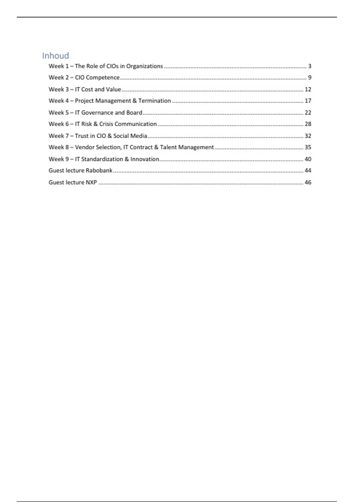 Week 1 – The Role of CIOs in Organizations ....................................................................................... 3