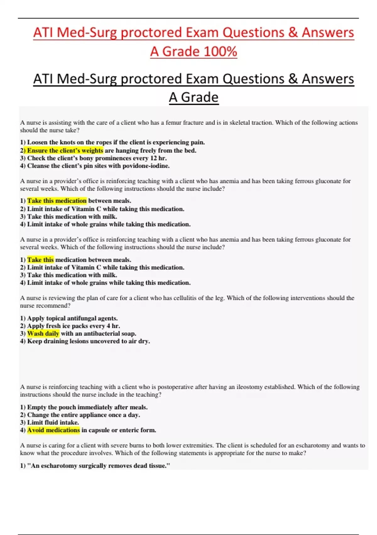 ATI Med-Surg proctored Exam Questions & Answers