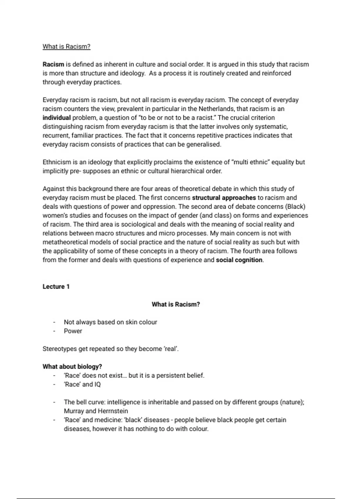 Lecture, Workgroup &Literature Notes: Racism in the Western World
