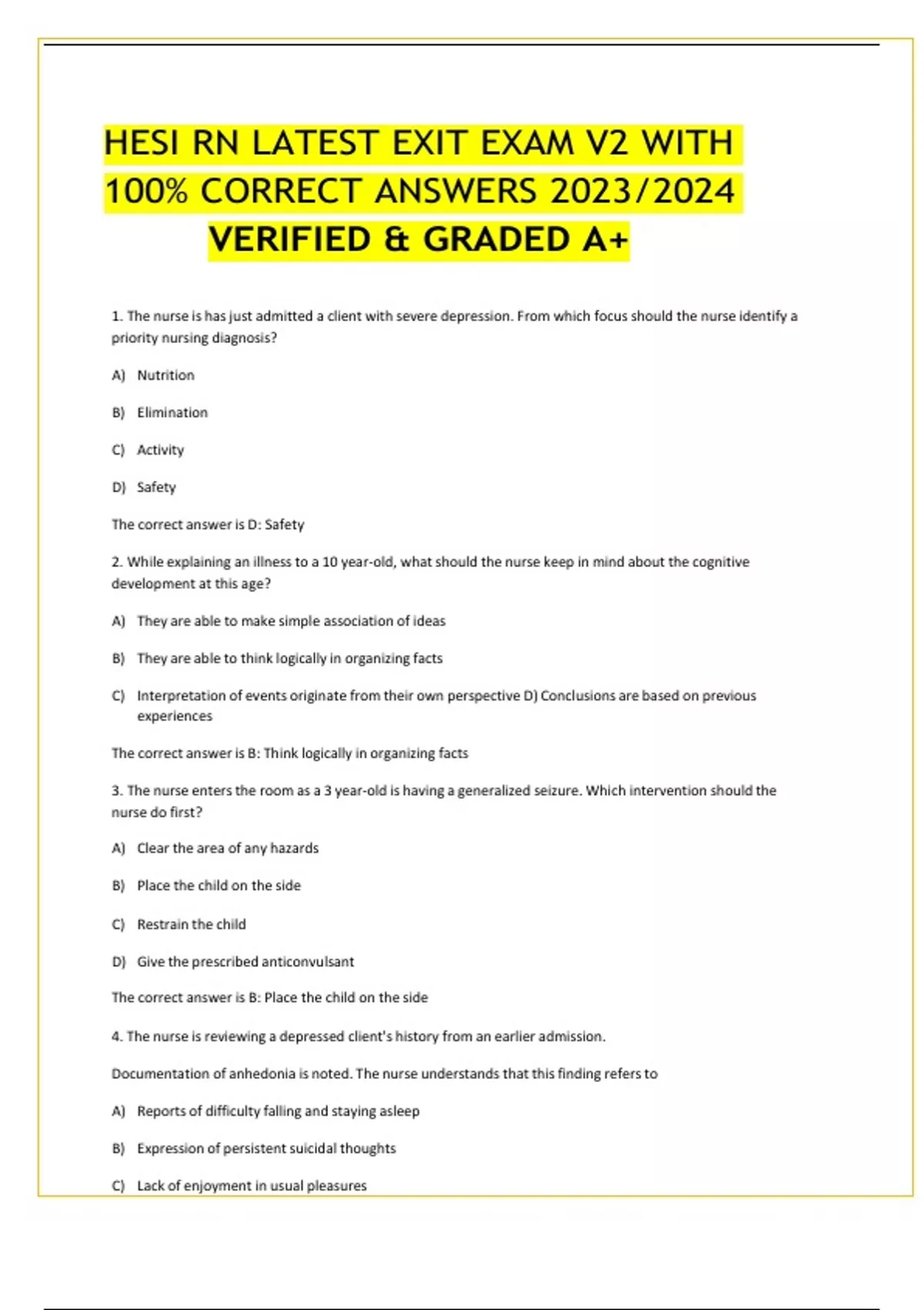 HESI RN LATEST EXIT EXAM V2 WITH 100% CORRECT ANSWERS 2023/2024 VERIFIED & GRADED A+