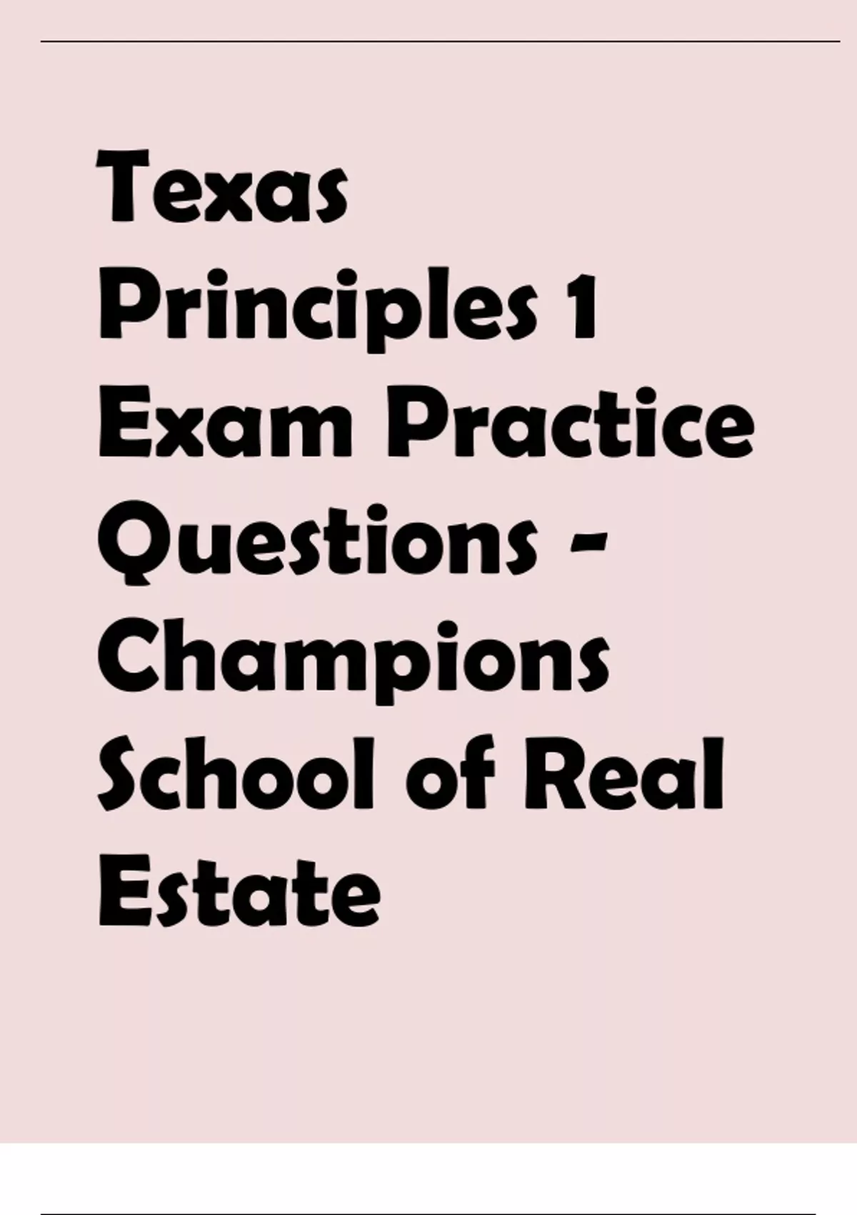TEXAS PRINCIPLES 1 EXAM PRACTICE QUESTIONS WITH ANSWERS - CHAMPIONS SCHOOL OF REAL ESTATE.VERIFIED