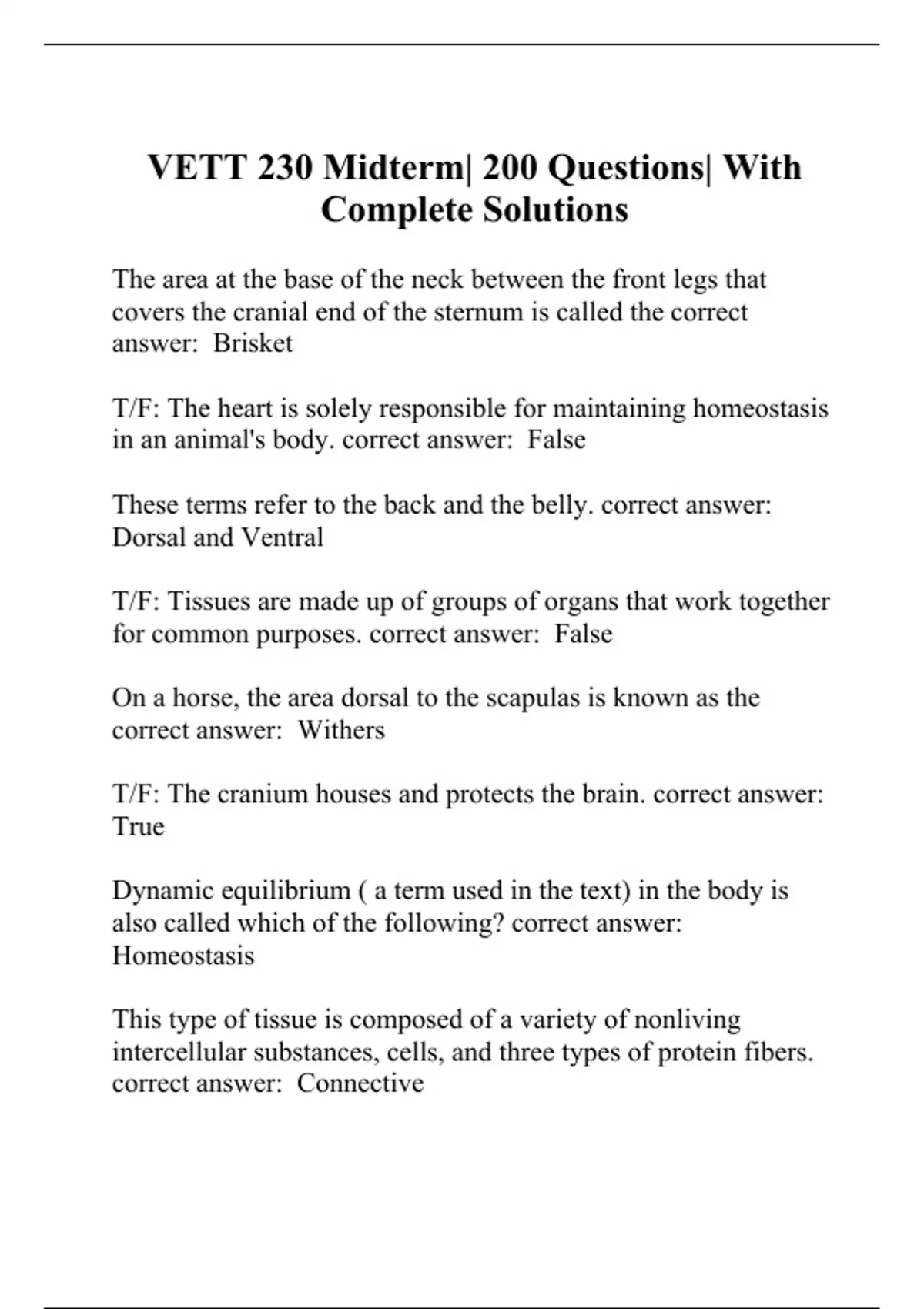 VETT 230 Midterm| 200 Questions| With Complete Solutions