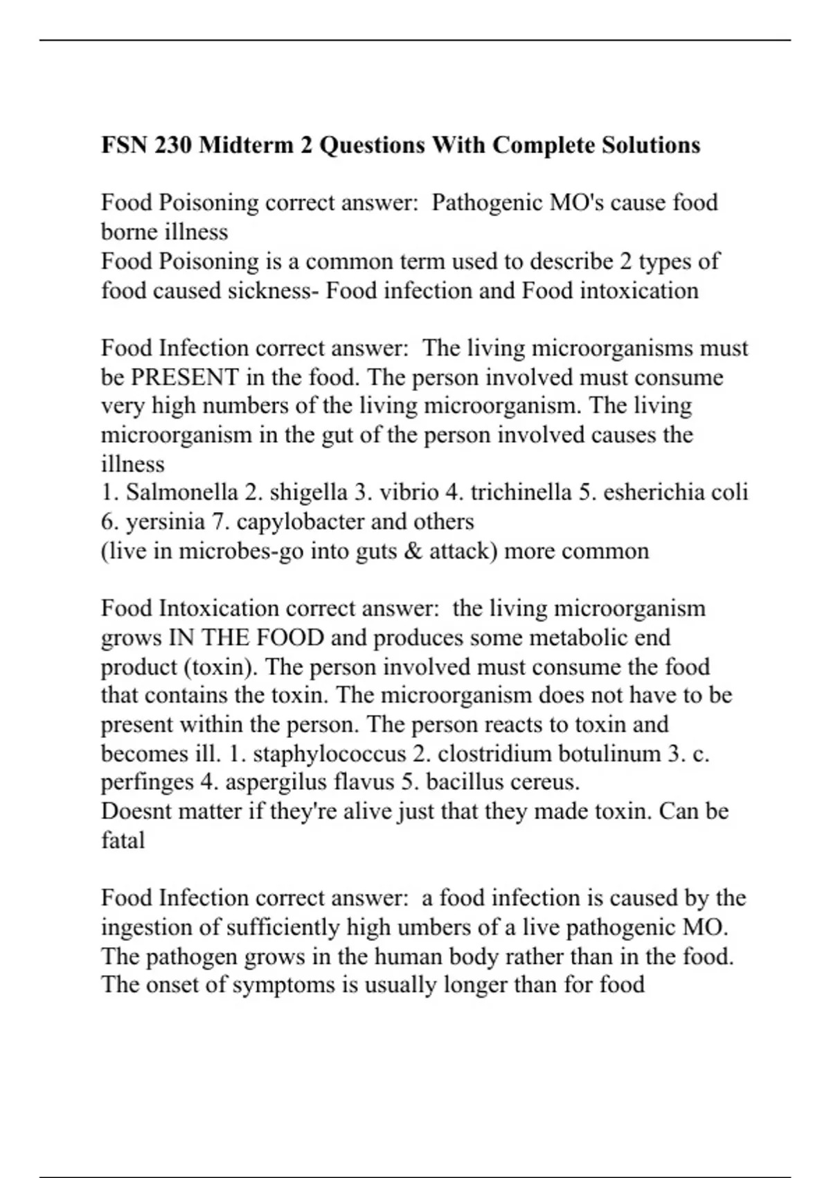 FSN 230 Midterm 2 Questions With Complete Solutions