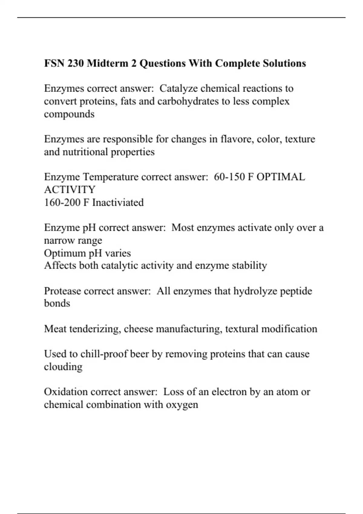 FSN 230 Midterm 2 Questions With Complete Solutions