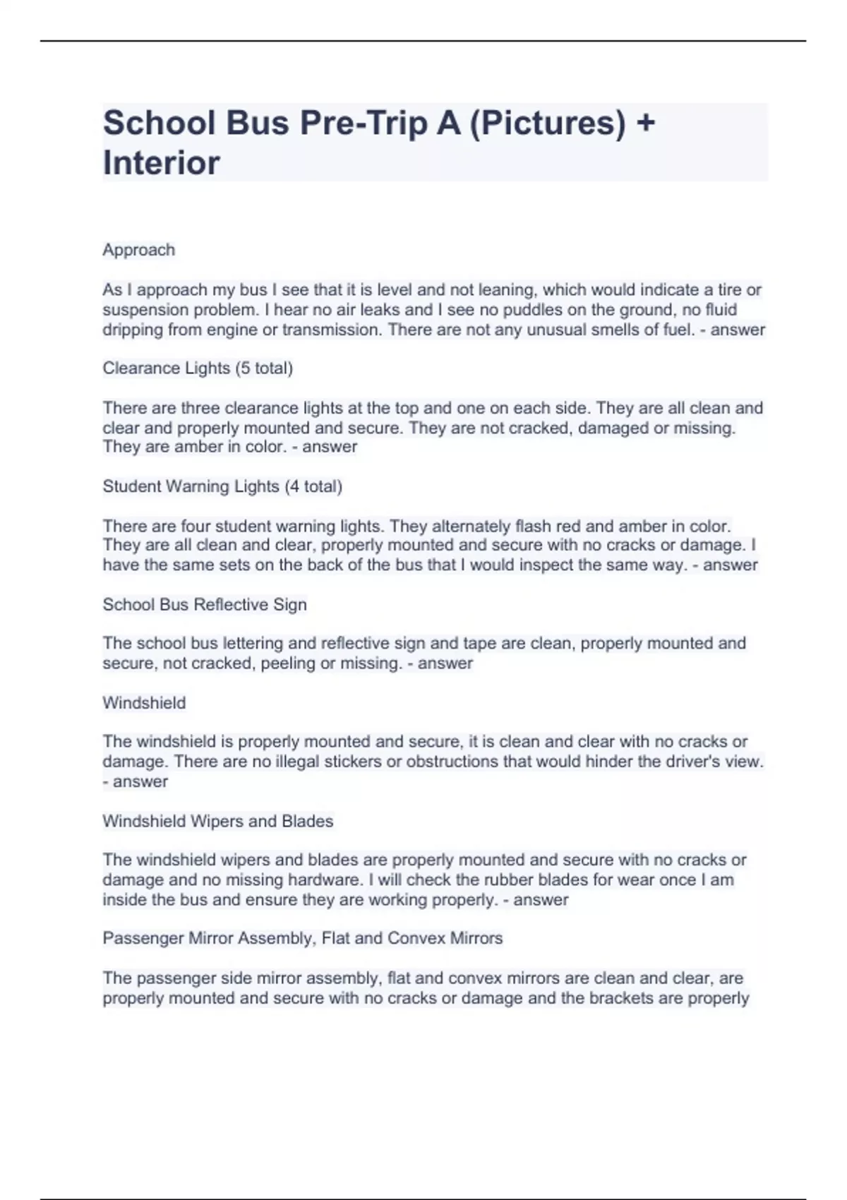Exam of 9 pages for the course School Bus at School Bus (School Bus Pre)