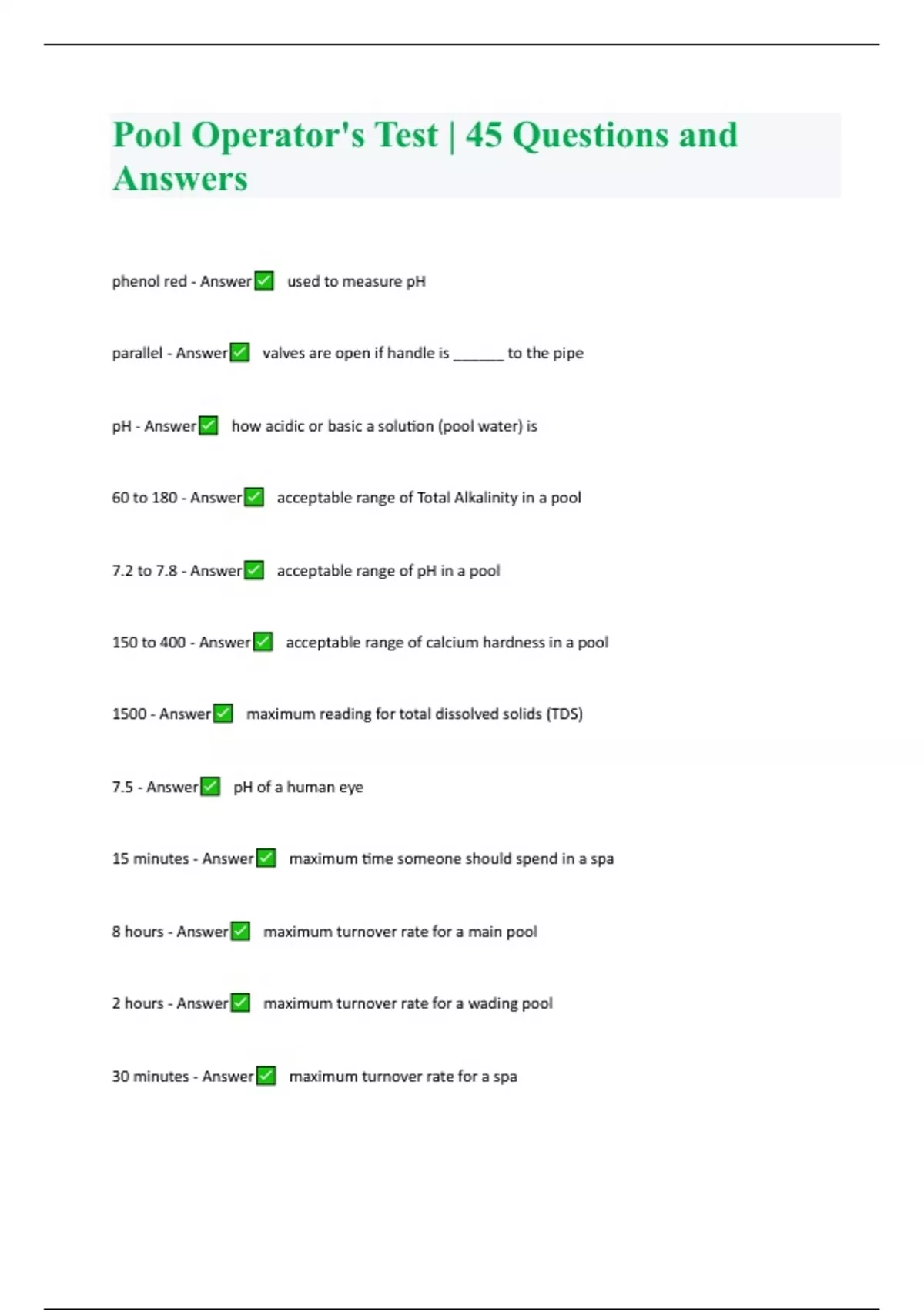 pool operators test 45 questions and answers