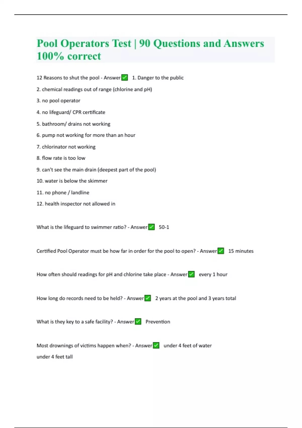 CERTIFIED POOL OPERATOR BUNDLED Exam Actual Questions and Answers 100% Verified | LATEST 2023-2024 | (Already Scored A+)
