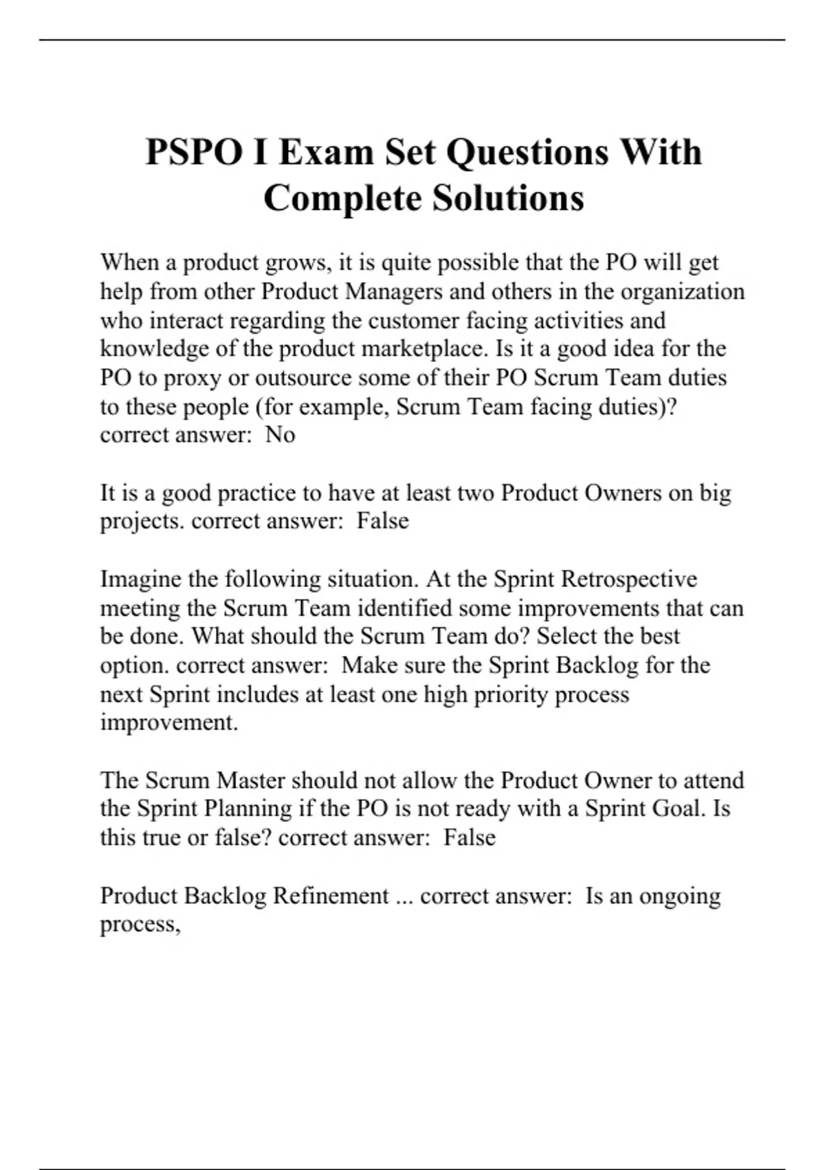 PSPO I Exam Set Questions With Complete Solutions