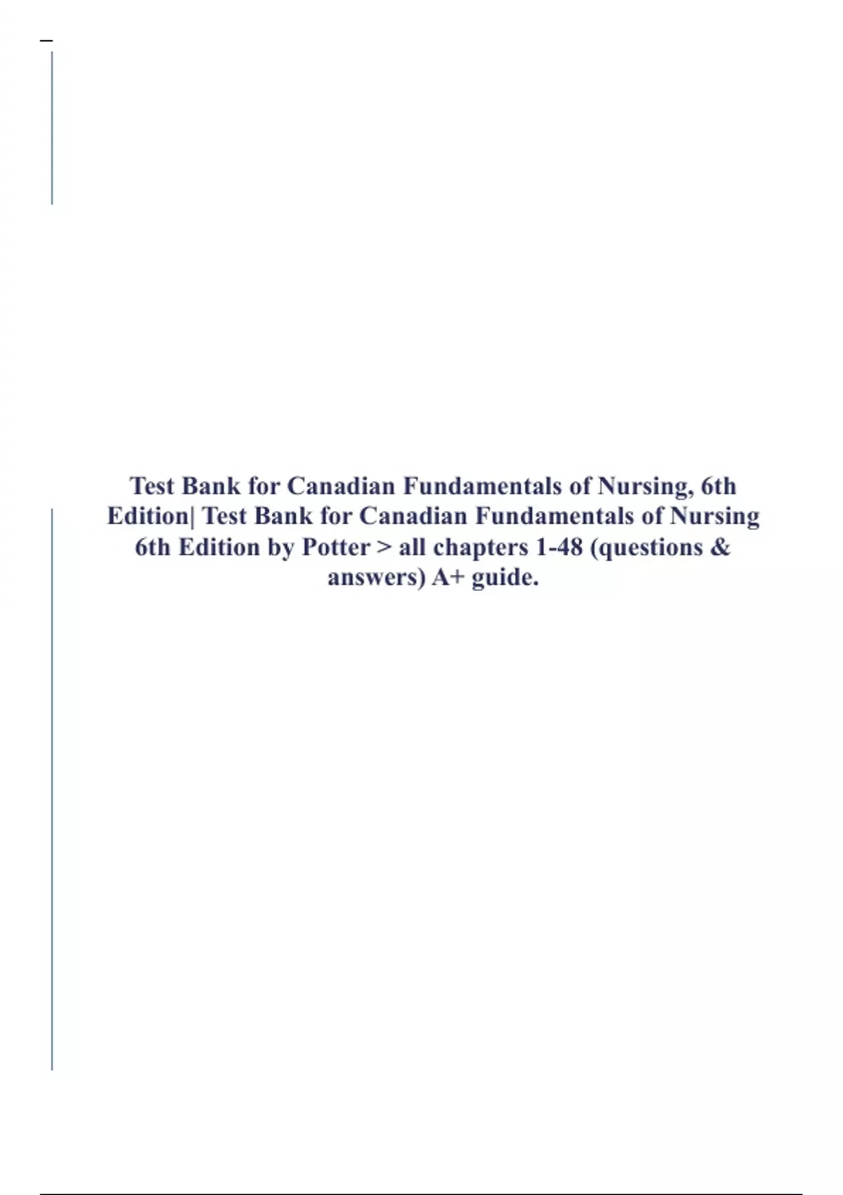 Test Bank for Canadian Fundamentals of Nursing, 6th Edition| Test Bank for Canadian Fundamentals of Nursing 6th Edition by Potter > all chapters 1-48 (questions & answers) A+ guide.