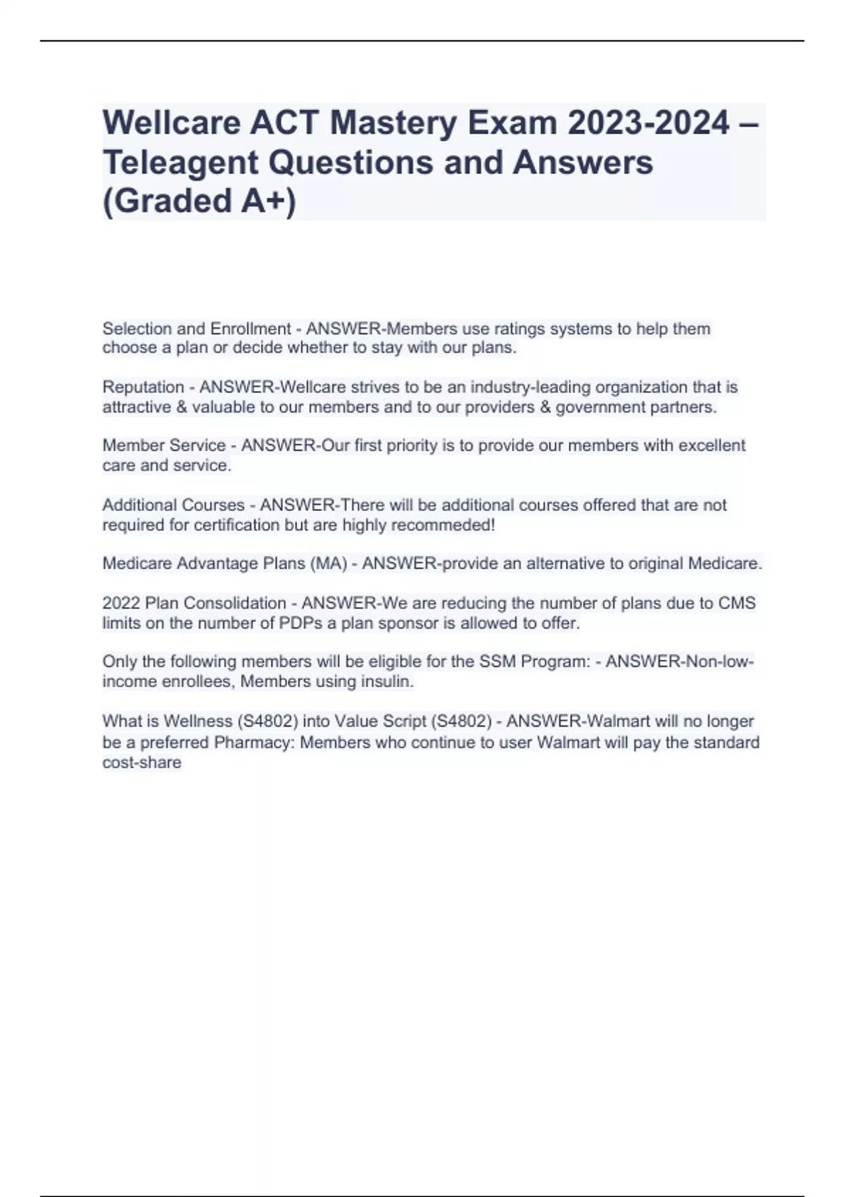 Wellcare ACT Mastery Exam – Teleagent Questions and Answers (Graded A+) Wellcare ACT Mastery Exam – Teleagent Questions and Answers (Graded A+)Wellcare ACT Mastery Exam – Teleagent Questions and Answers (Graded A+)