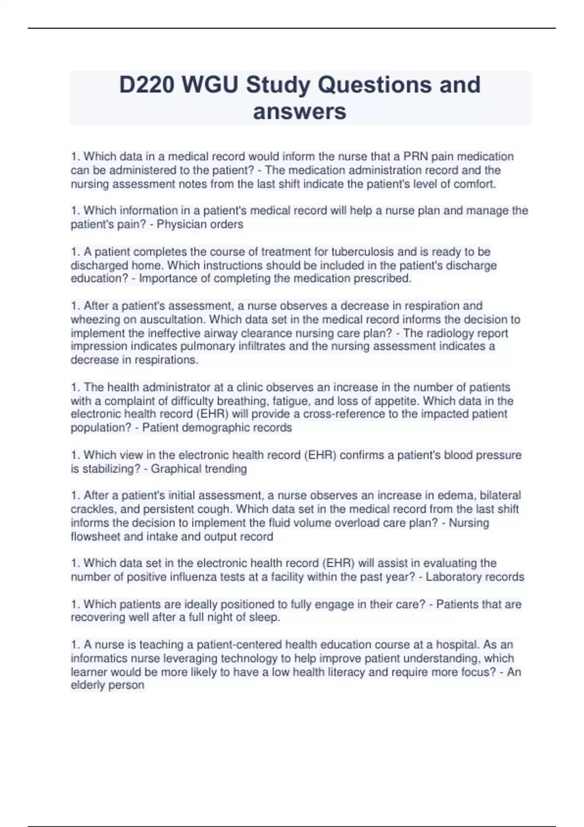 d220 wgu study questions and answers