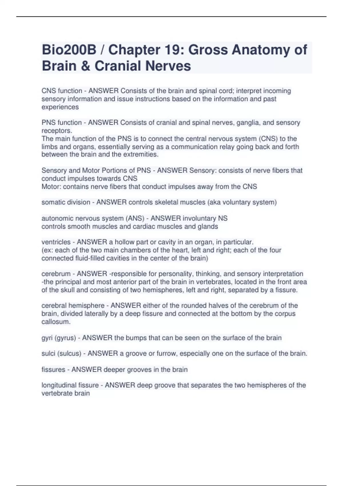 Bio200B / Chapter 19: Gross Anatomy of Brain & Cranial Nerves