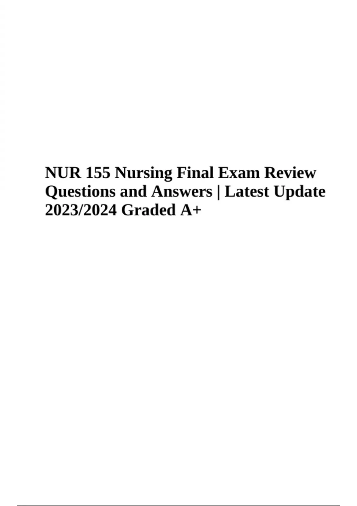 NUR 155 Nursing Final Exam Review Questions and Answers | Latest Update 2023/2024 Graded A+