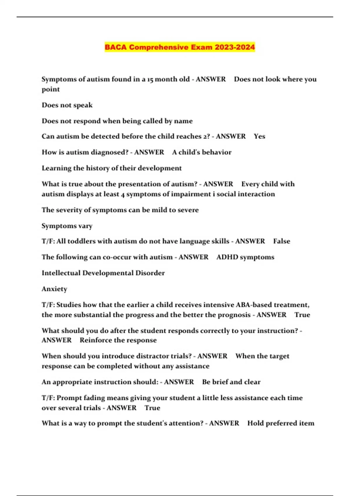 BACA Comprehensive Exam