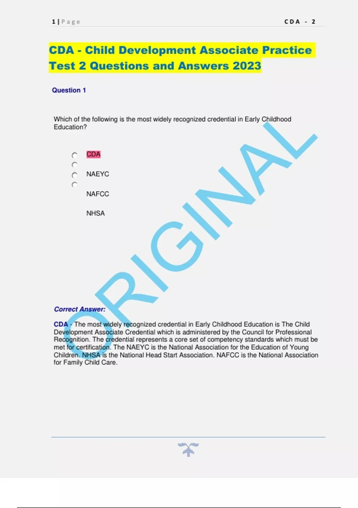CDA - Child Development Associate Practice Test 2 Questions and Answers 2023