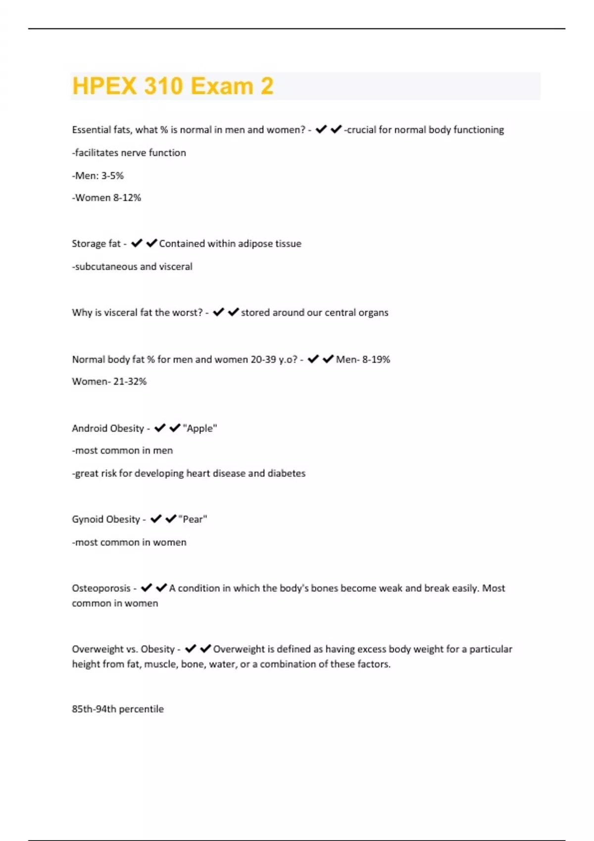 HPEX 310 Exam 2 Actual Questions and Answers 100%