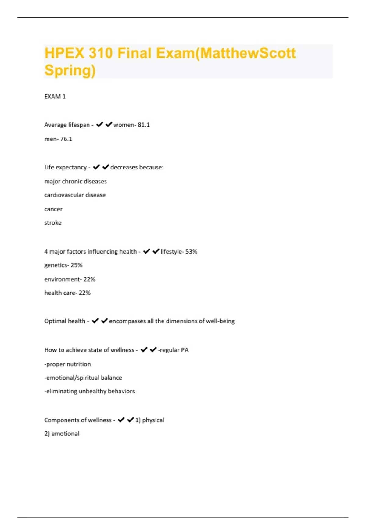 HPEX 310 Final Exam (Matthew Scott Spring )397 Questions and Answers(A+ Solution guide)
